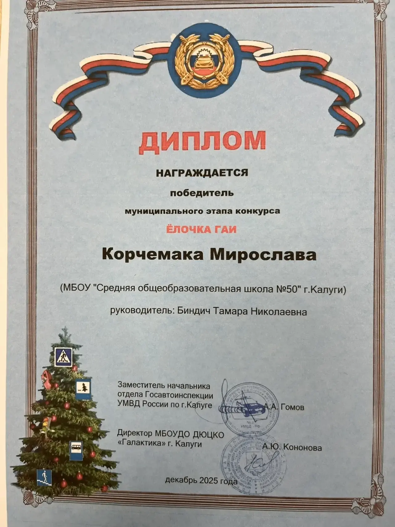 Подведены итоги регионального конкурса по изготовлению тематических новогодних игрушек «Ёлочка ГАИ – 2025». Более тысячи детей со всей области боролись за звание победителя, и в финал вышли 40 участников. Поздравляем Корчемаку М., учащуюся 2 «Б» класса, и её руководителя Биндич Т. Н. с получением диплома победителя конкурса! Желаем новых творческих свершений и успехов!