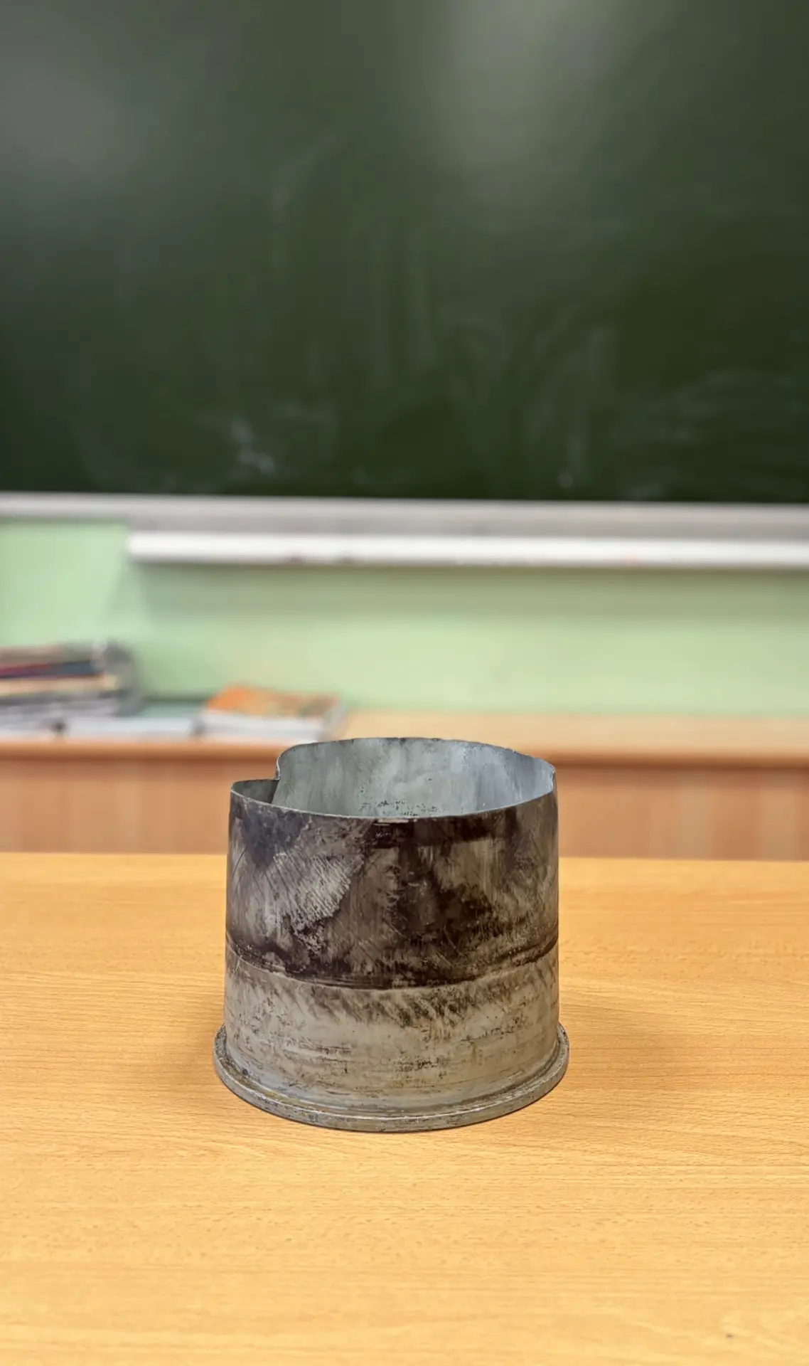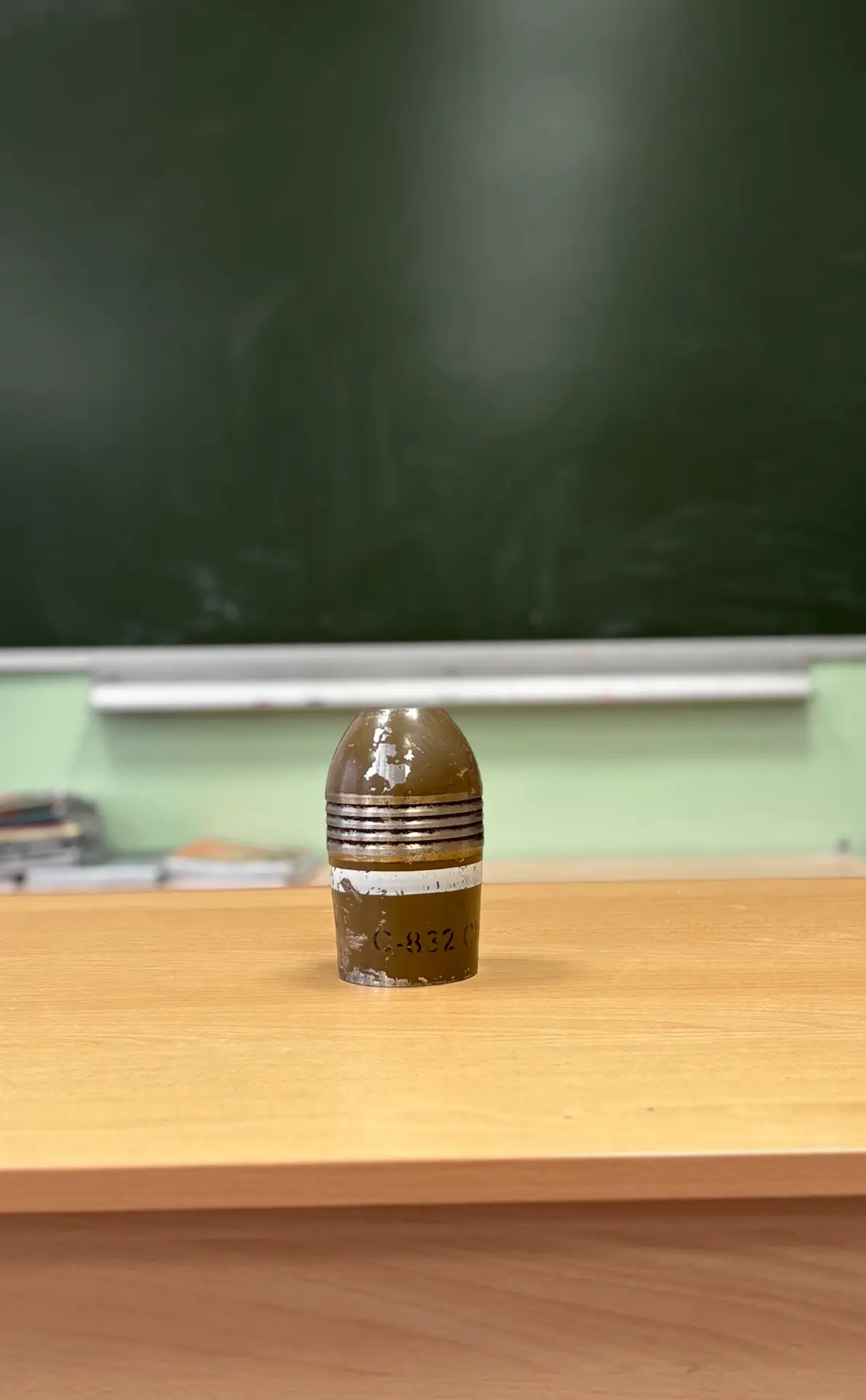 В школьном музее появились интересные экспонаты. Осколок от ракеты HIMARS, привезённый из Курской области (1 фото). Вражеский FPV Дрон (2 фото). Корпус миномётного снаряда (3 фото). Гильза от танкового снаряда (4 фото).