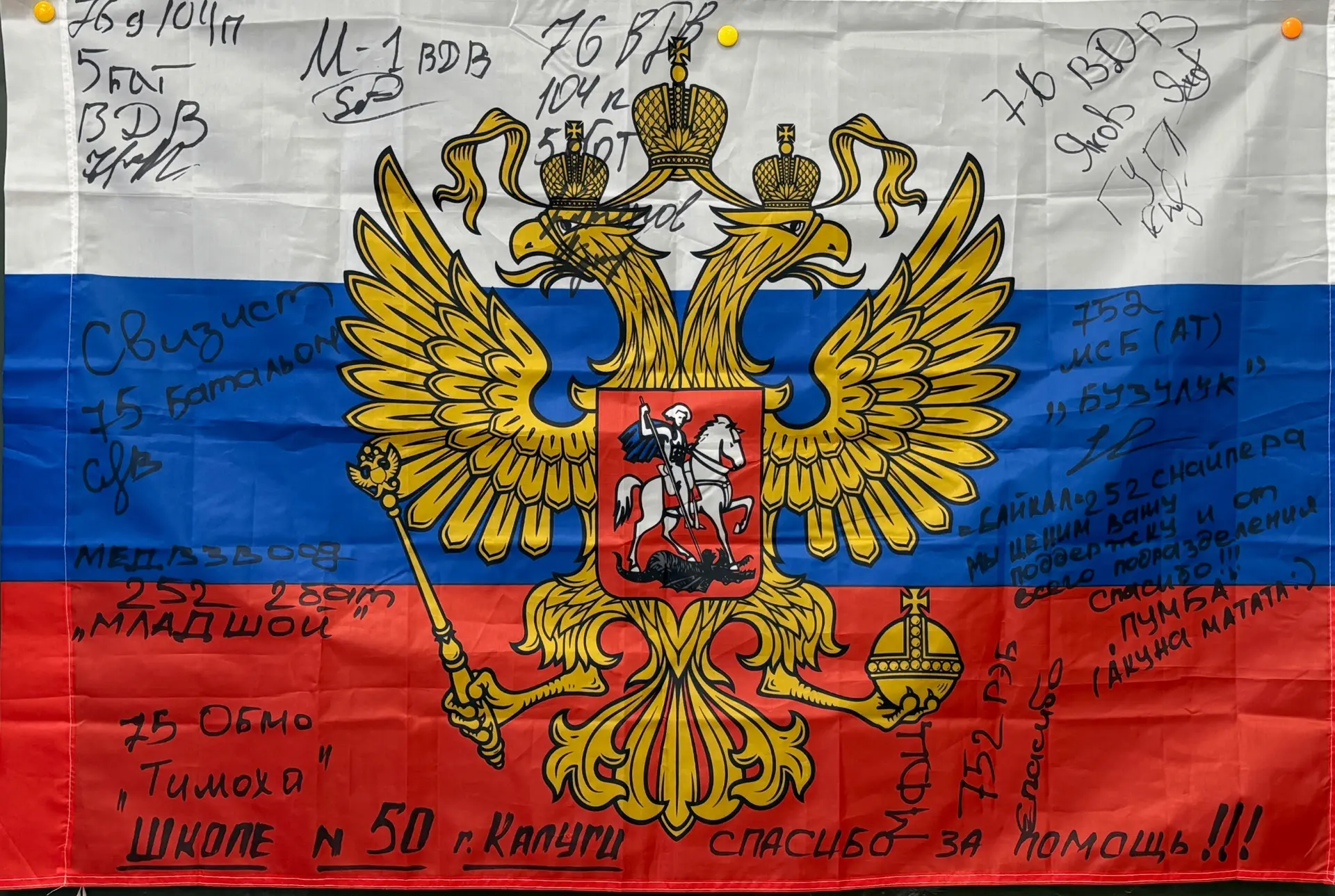 Очень ценным и дорогим атрибутом нашего музея являются флаги, подписанные бойцами, которые ежедневно выполняют святой подвиг по защите нашей страны (фото 6,7).