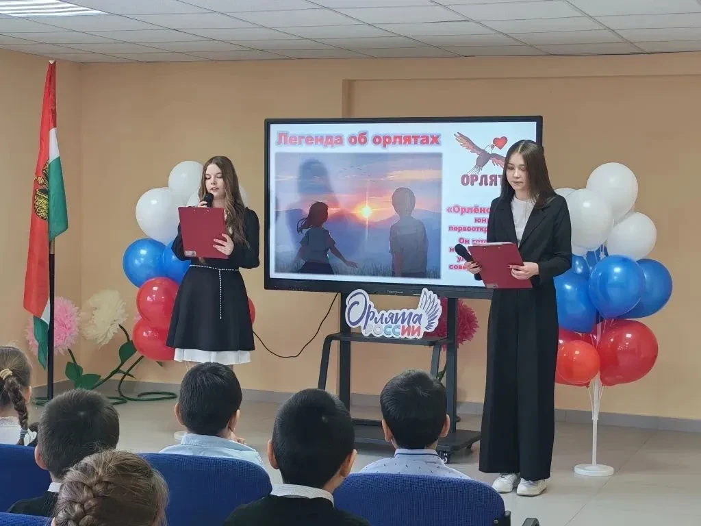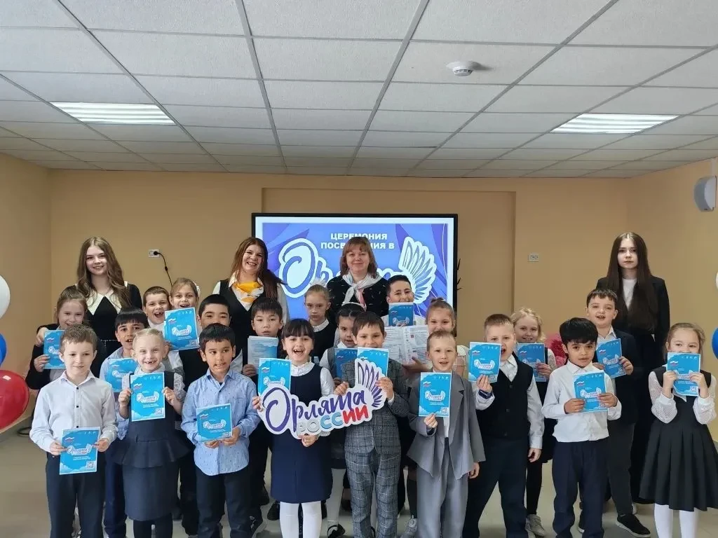 Сегодня в нашей школе прошло знаменательное событие — торжественная церемония посвящения учеников первых классов в «Орлята России»!🇷🇺🇷🇺🇷🇺Это важный шаг для наших ребят, ведь стать «Орлёнком» — значит стать частью большой и дружной семьи, где ценят дружбу, взаимовыручку, уважение к старшим и любовь к Родине. В этот праздничный день заместитель директора по воспитательной работе Алёна Евгеньевна Прокопенко и советник директора по воспитанию и взаимодействию с детскими общественными объединениями Блохина Евгения Андреевна вручили юным "Орлятам" заслуженные сертификаты, подтверждающие их новый статус.✨Мероприятие прошло в тёплой и торжественной атмосфере. Ребята с гордостью исполнили гимн «Орлят России», а ярким украшением праздника стал зажигательный танцевальный флеш-моб, подготовленный девочками из света старшеклассников.
