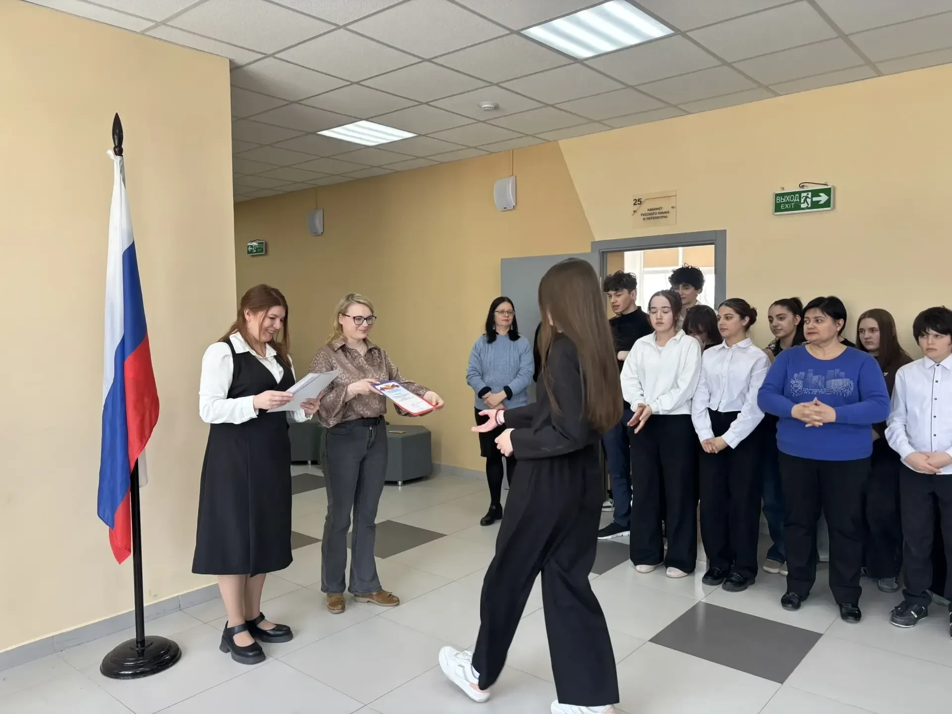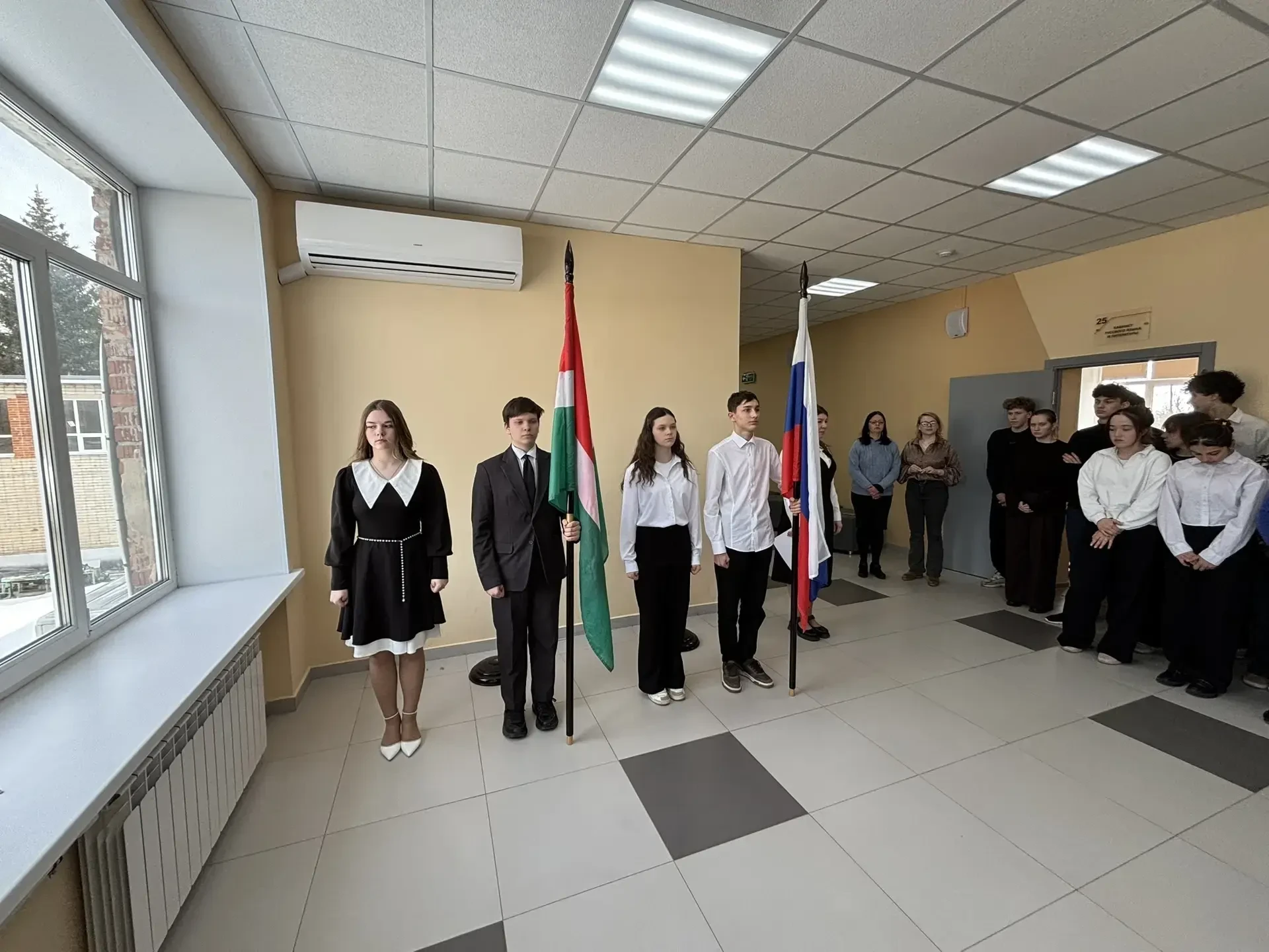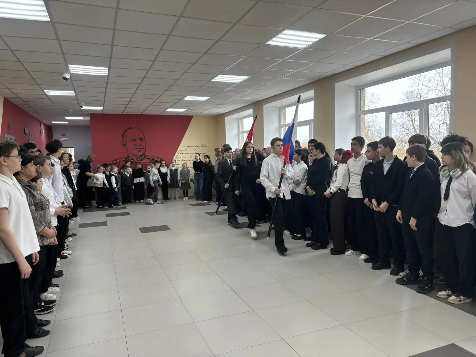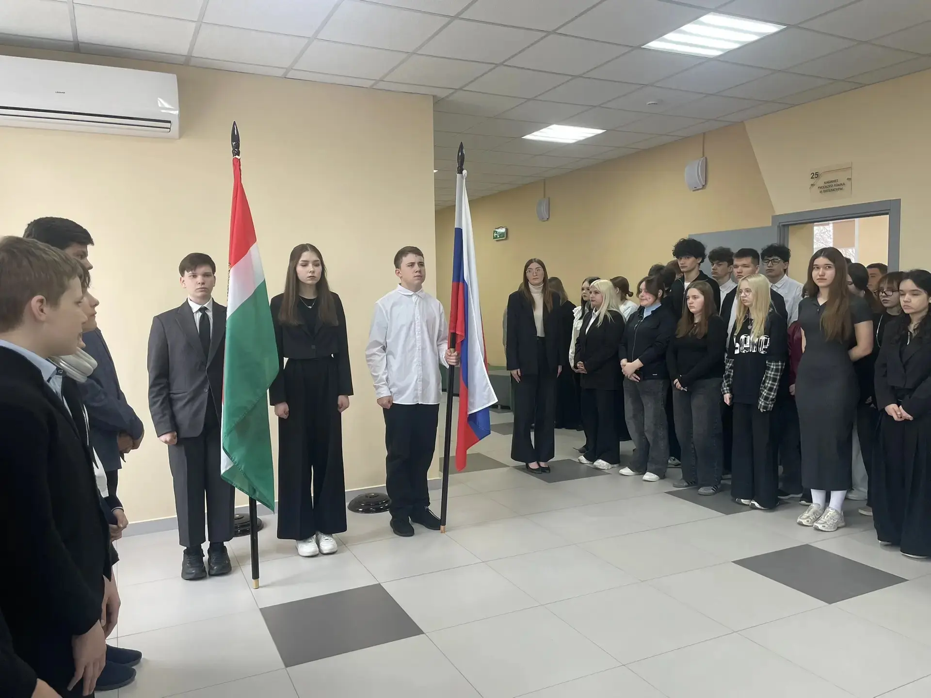 Мероприятие началось с исполнения гимна Российской Федерации — это важный момент, который объединяет всех нас и напоминает о значимости уважения к нашей стране.