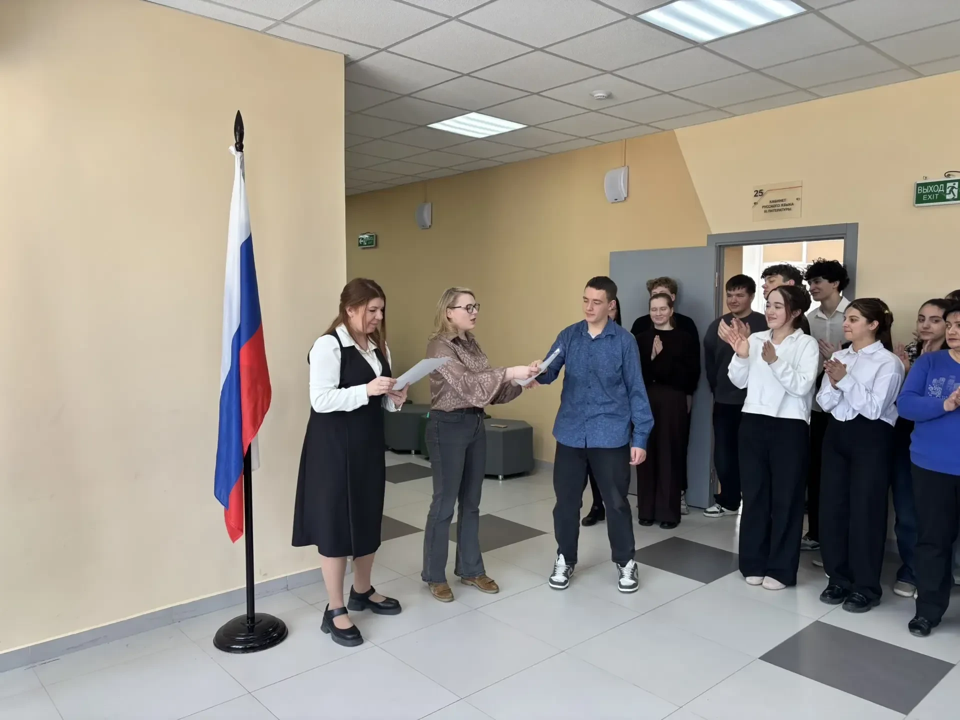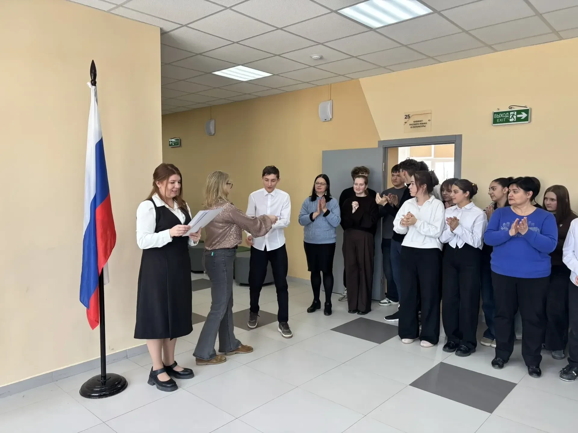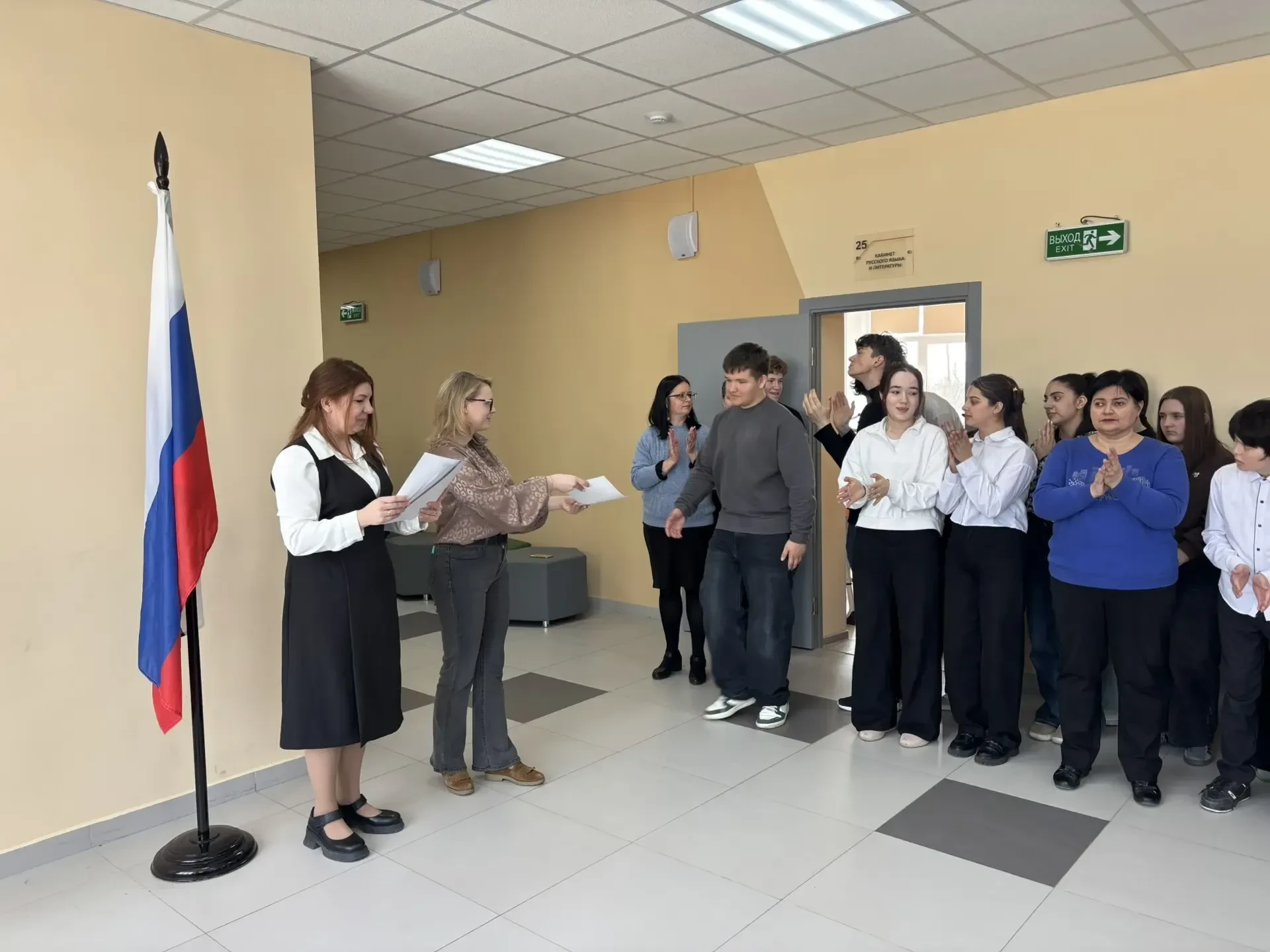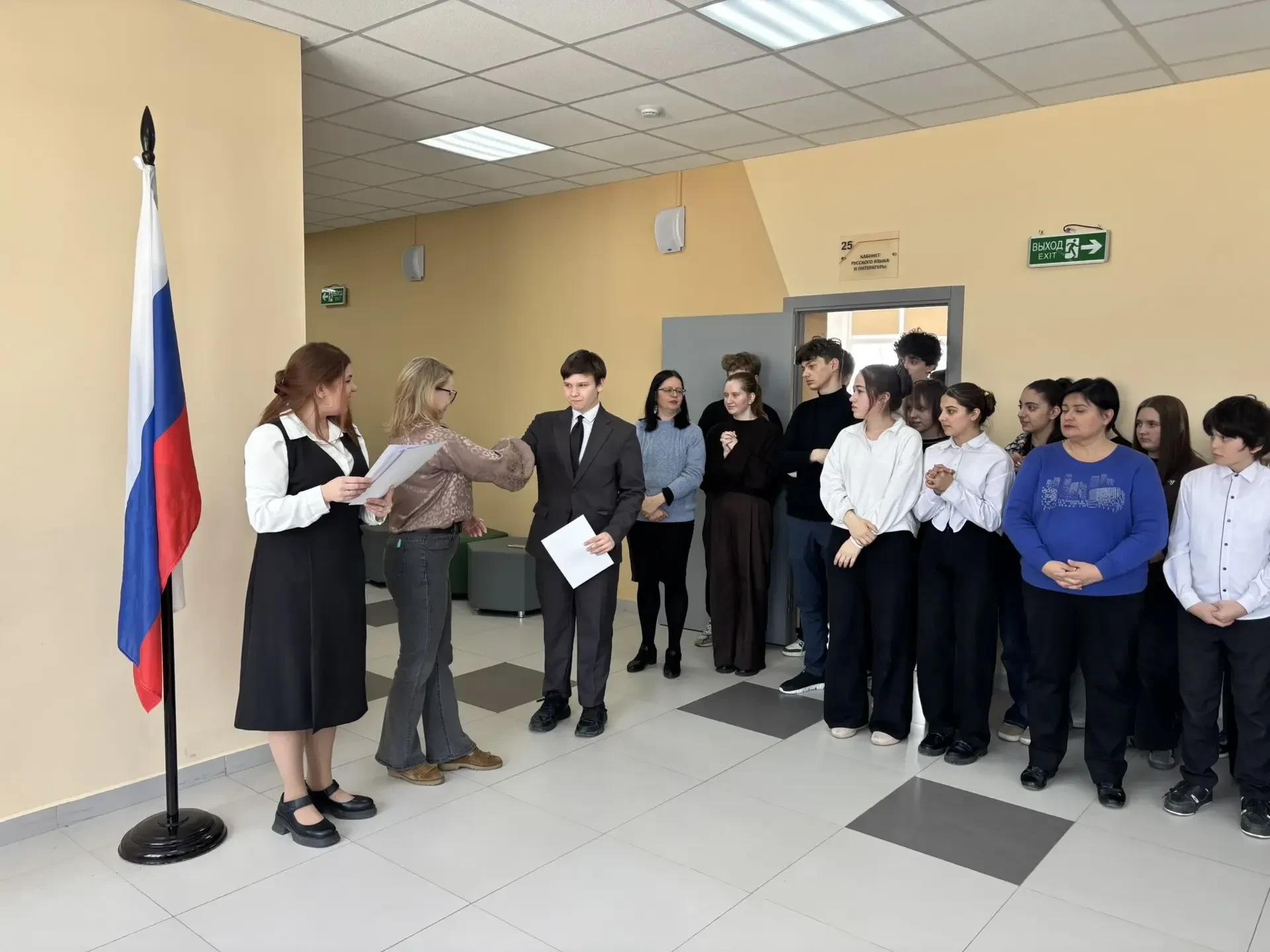 Мероприятие началось с исполнения гимна Российской Федерации — это важный момент, который объединяет всех нас и напоминает о значимости уважения к нашей стране.