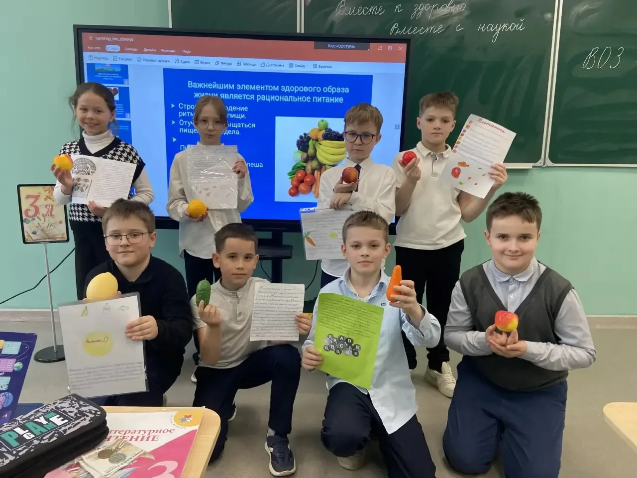 В 3 "А" классе этот праздник начался на уроке физкультуры, где дети с удовольствием приняли участие в игре "Весёлые старты" Как всегда всё прошло радостно и интересно.. Праздник продолжился в классе. Здесь детей ожидали рассказ об истории Всемирного дня здоровья, о режиме дня, о пользе витаминов, весёлые загадки и театрализованное представление на эту тему.