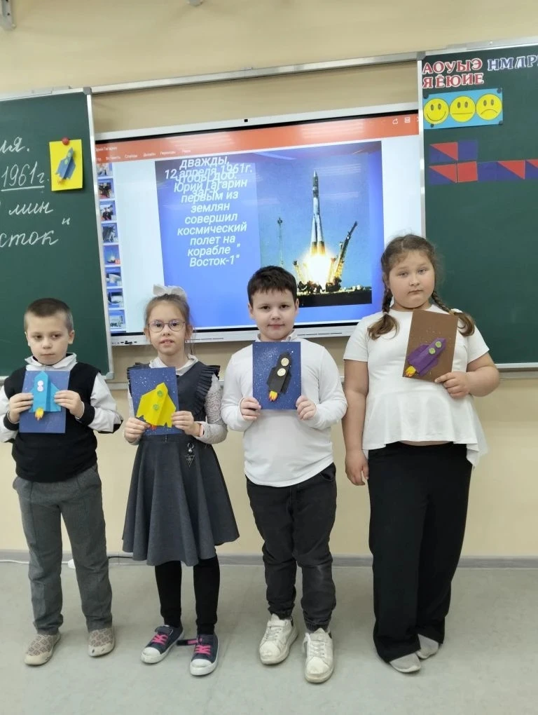 Затем для учащихся прошли занятия в рамках цикла «Разговоры о важном», приуроченные к 65-летию первого полёта человека в космос. Ребята вместе с классными руководителями вспомнили подвиг Юрия Гагарина, обсудили современные достижения российской космонавтики и перспективы полётов к Луне и Марсу. Младшие школьники отгадывали «космические» загадки и рисовали звёздные корабли.