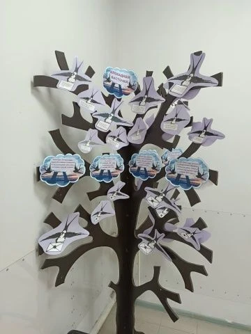 📜Ребята из начальной школы внесли свой вклад в создание памятной атмосферы. Они изготовили "блокадных ласточек". Эти птицы украсили наше школьное дерево. А ученики 1 "А" класса изготовили информационный плакат.
