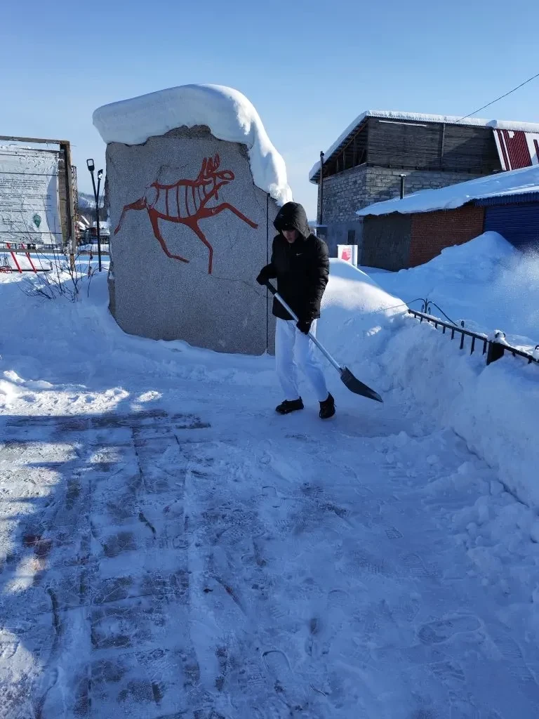 💪 Ребята дружно расчищали снег, стараясь не повредить конструкцию. Под их умелыми руками стелла "Я люблю Турочак" вновь засияла во всей красе, радуя глаз и напоминая всем жителям о любви и гордости за свой родное село.