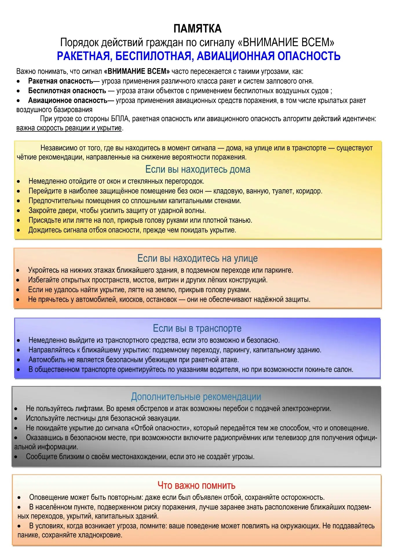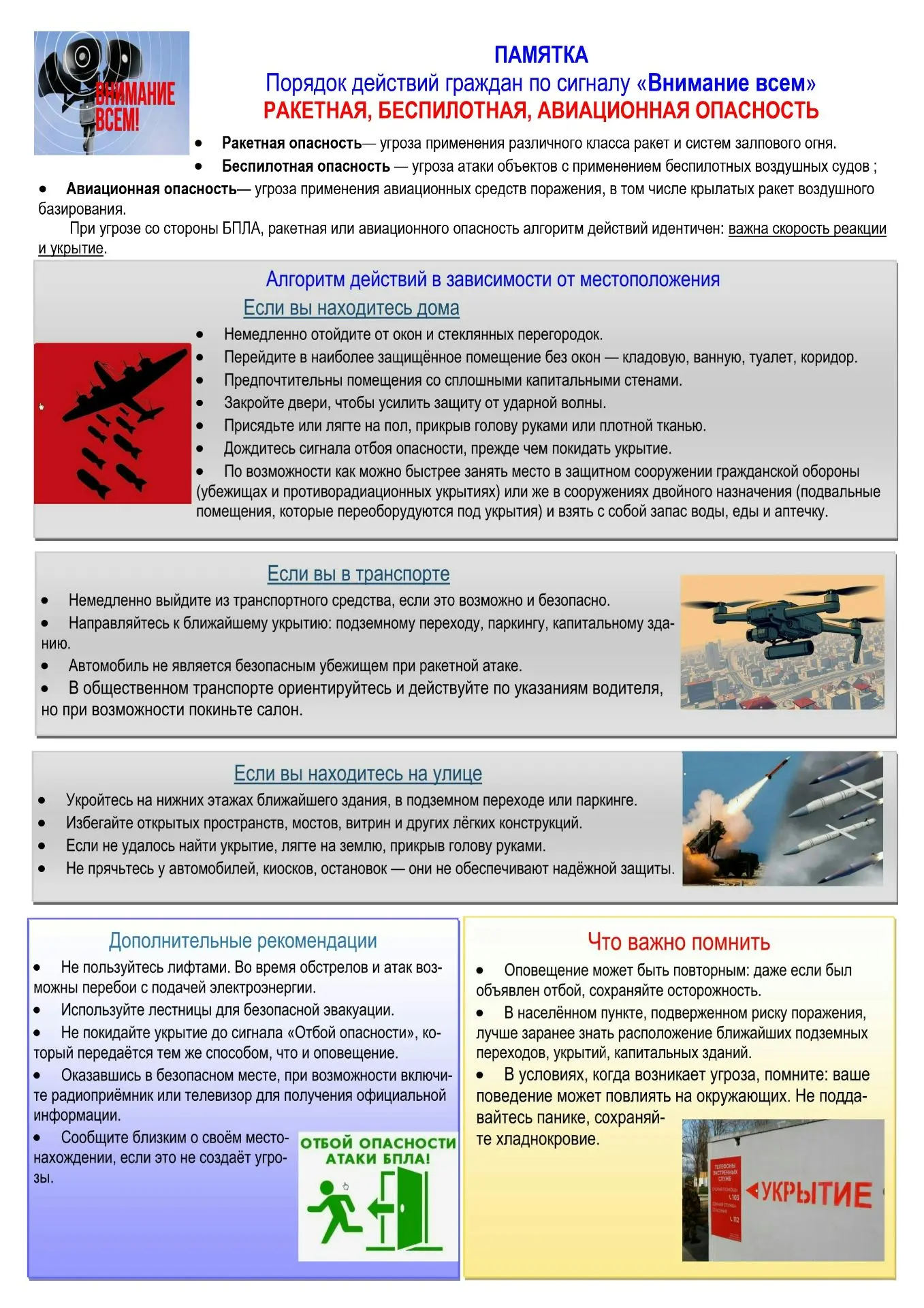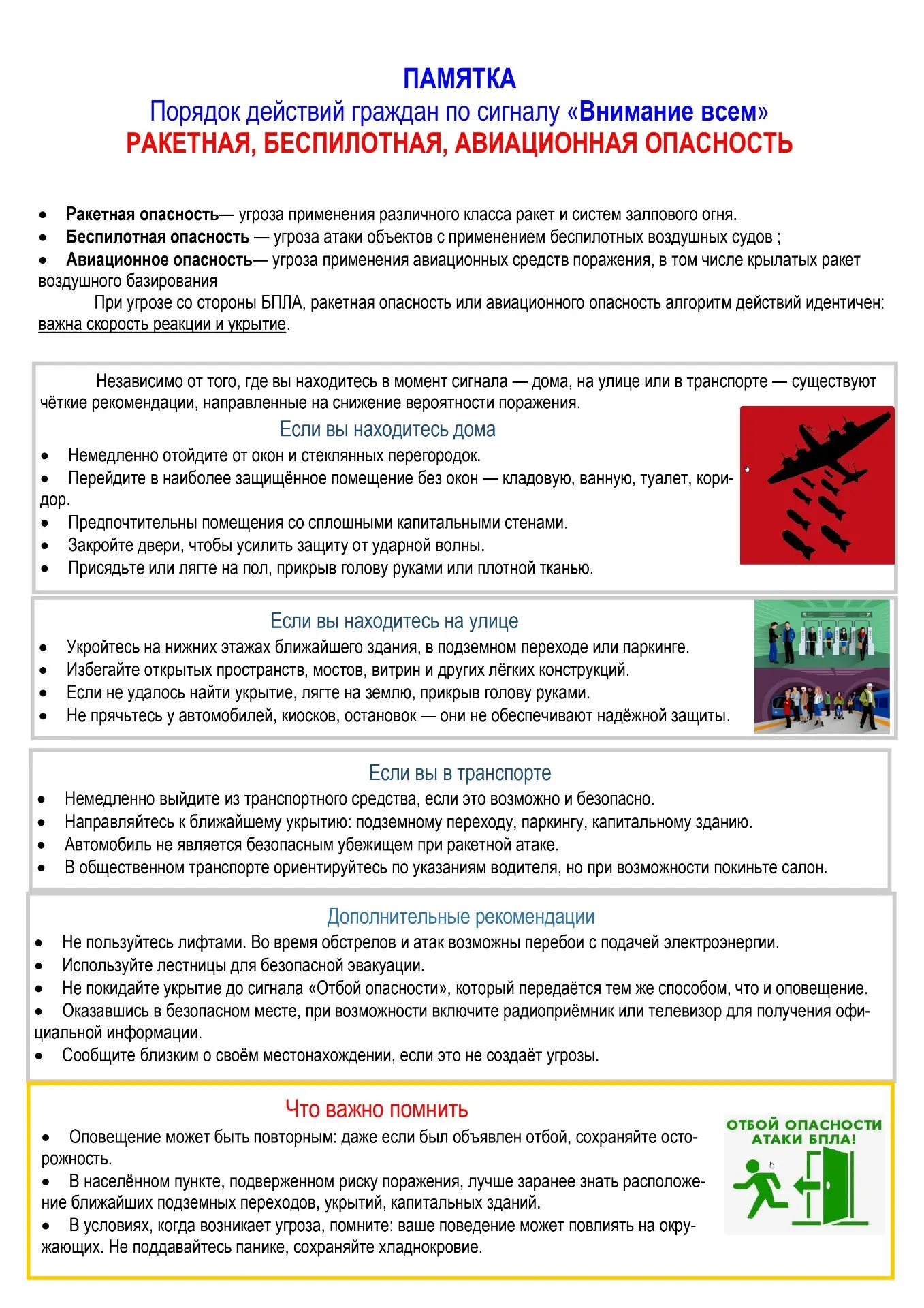 Памятка о безопасном поведении в условиях угрозы атаки БПЛА – в карточках.