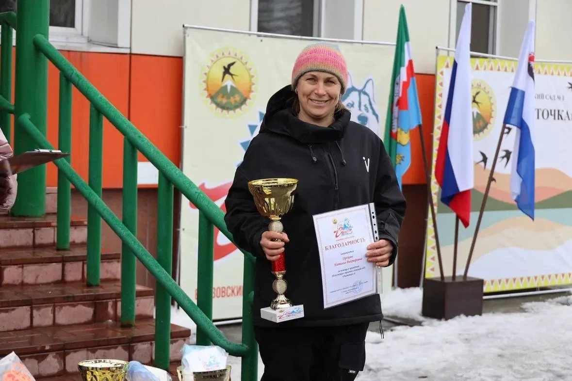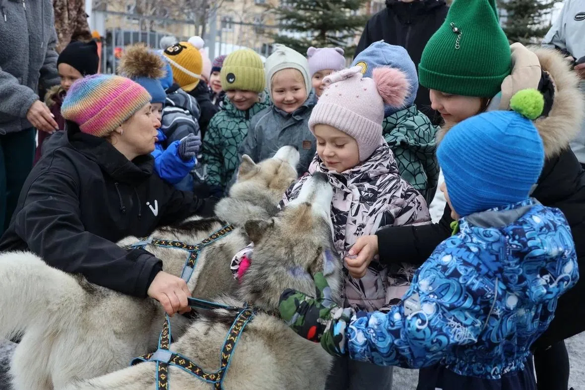 💎 Главной гостьей и украшением праздника стала многократная чемпионка края по ездовым видам спорта, победительница «Елизовского спринта-2026» Наталья Орехова. Она приехала к малышам не одна, а со своими четвероногими питомцами — прекрасными собаками. Добрые и милые, они подарили детям море положительных эмоций.
