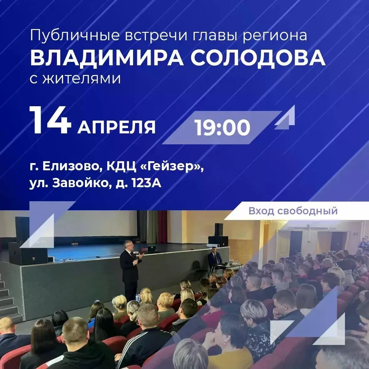 👥Губернатор Камчатского края продолжает регулярные встречи с жителями. Приглашаем вас 14 апреля в 19:00 в КДЦ «Гейзер» по ул. Завойко, д. 123А.