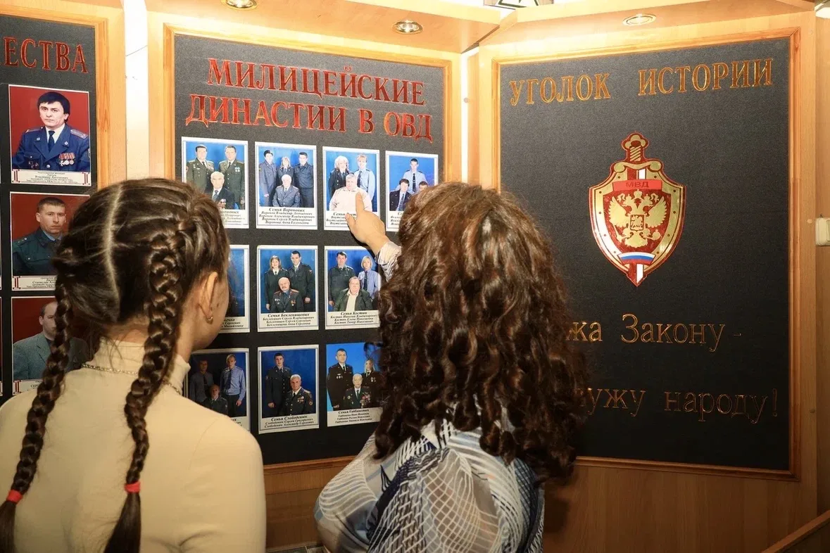 📷 Первой точкой маршрута стал уголок истории ОМВД России по Елизовскому району. Экскурсовод — представитель совета ветеранов Сергей Родионов — рассказал ребятам об истории становления милиции и полиции на Камчатке, а также о героических подвигах земляков, которые несут службу по охране правопорядка. Школьники с интересом рассматривали экспонаты: старую форму, награды, фотографии и документы разных лет.