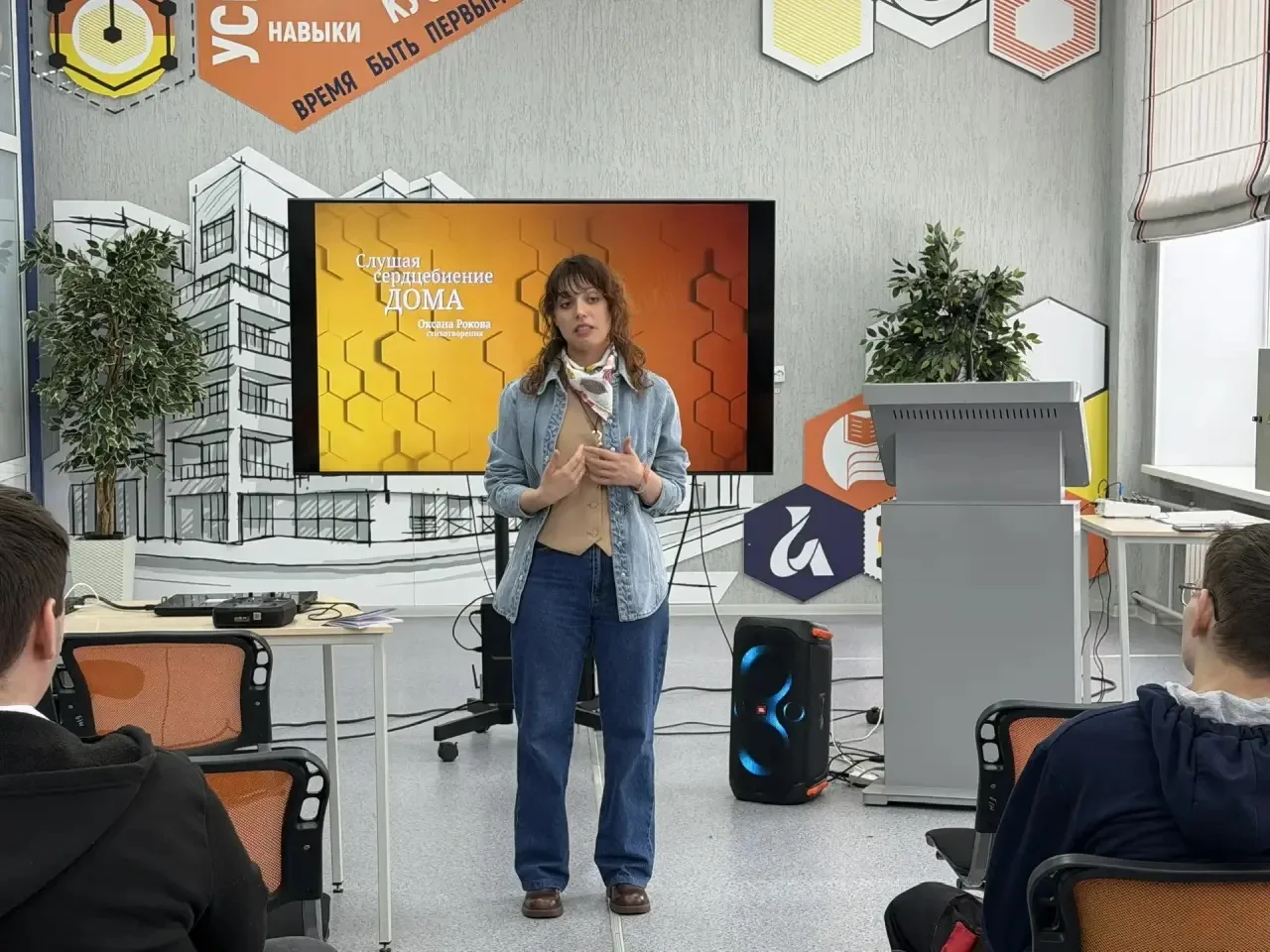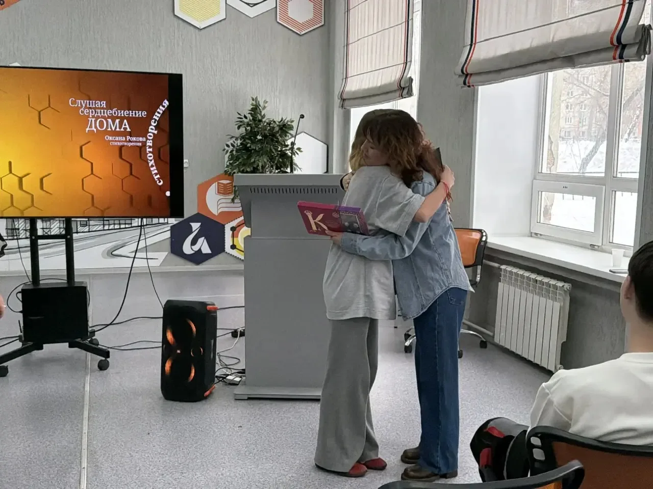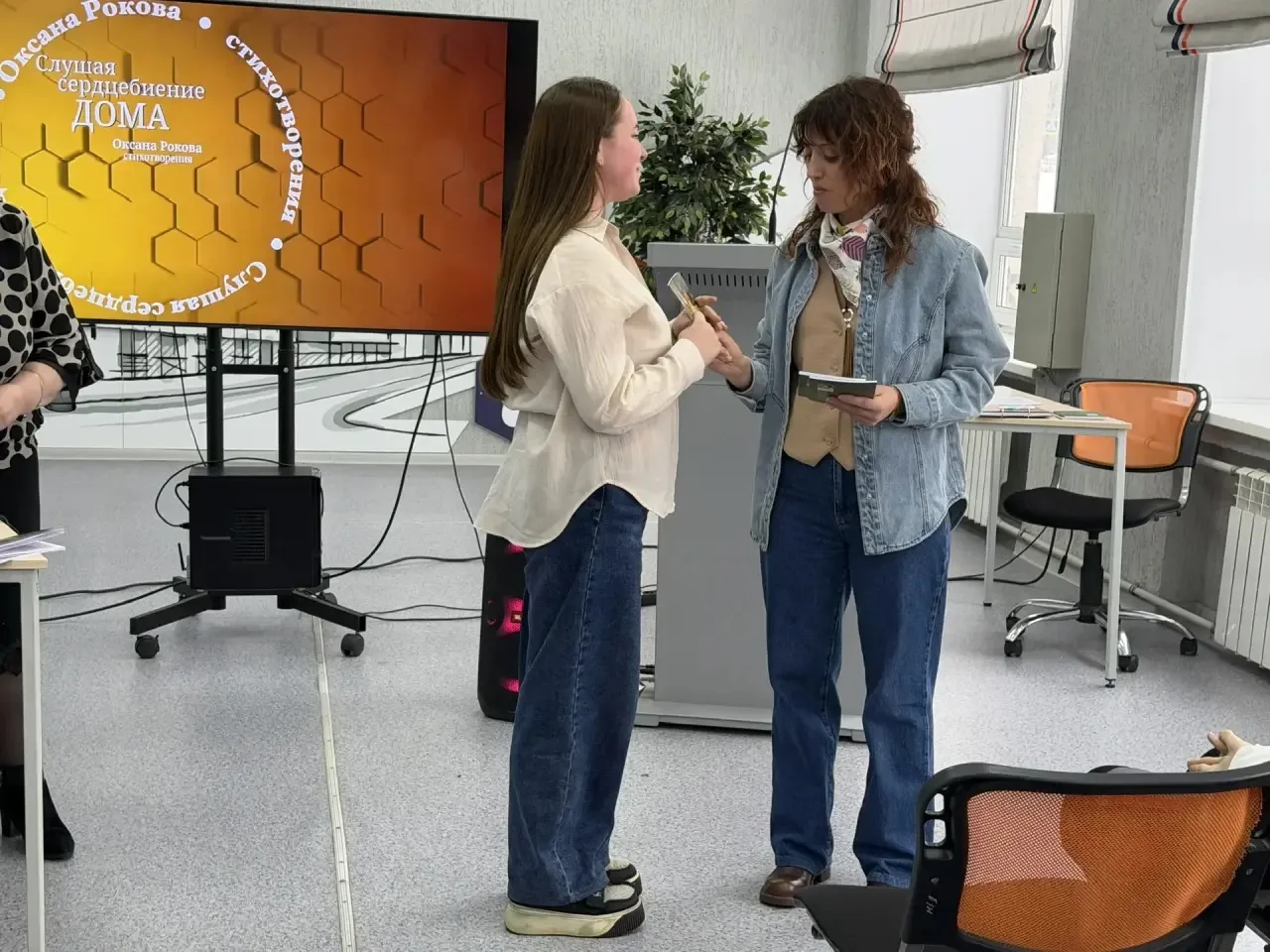 Оксана Валентиновна поделилась личными историями о путешествиях по Алтаю, в города Мурманск и Санкт-Петербург, рассказала о своих источниках вдохновения и провела живой диалог со студентами. Встреча получилась по-настоящему тёплой: звучали не только стихи, но и искренние вопросы, размышления о литературе и искусстве.