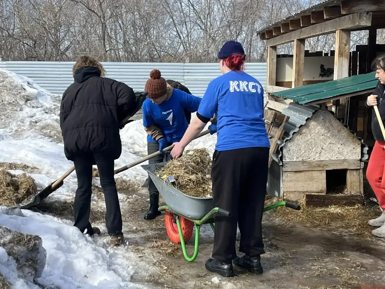 📍 В феврале провели акцию «Добрые лапки» и съездили в приют «Добрый двор Валентины» — чистили снег ❄️, привозили корма и пелёнки 🥫