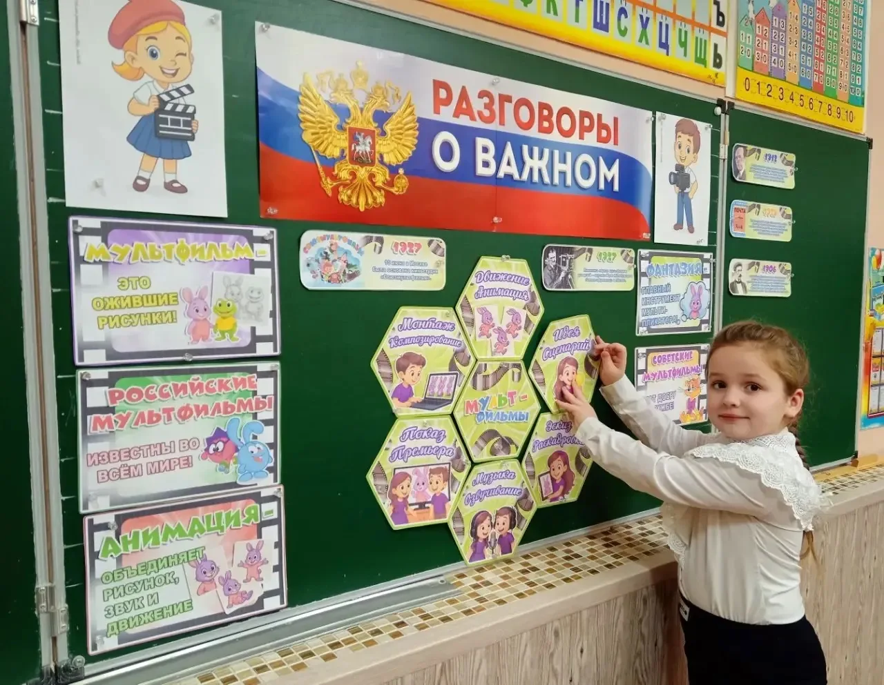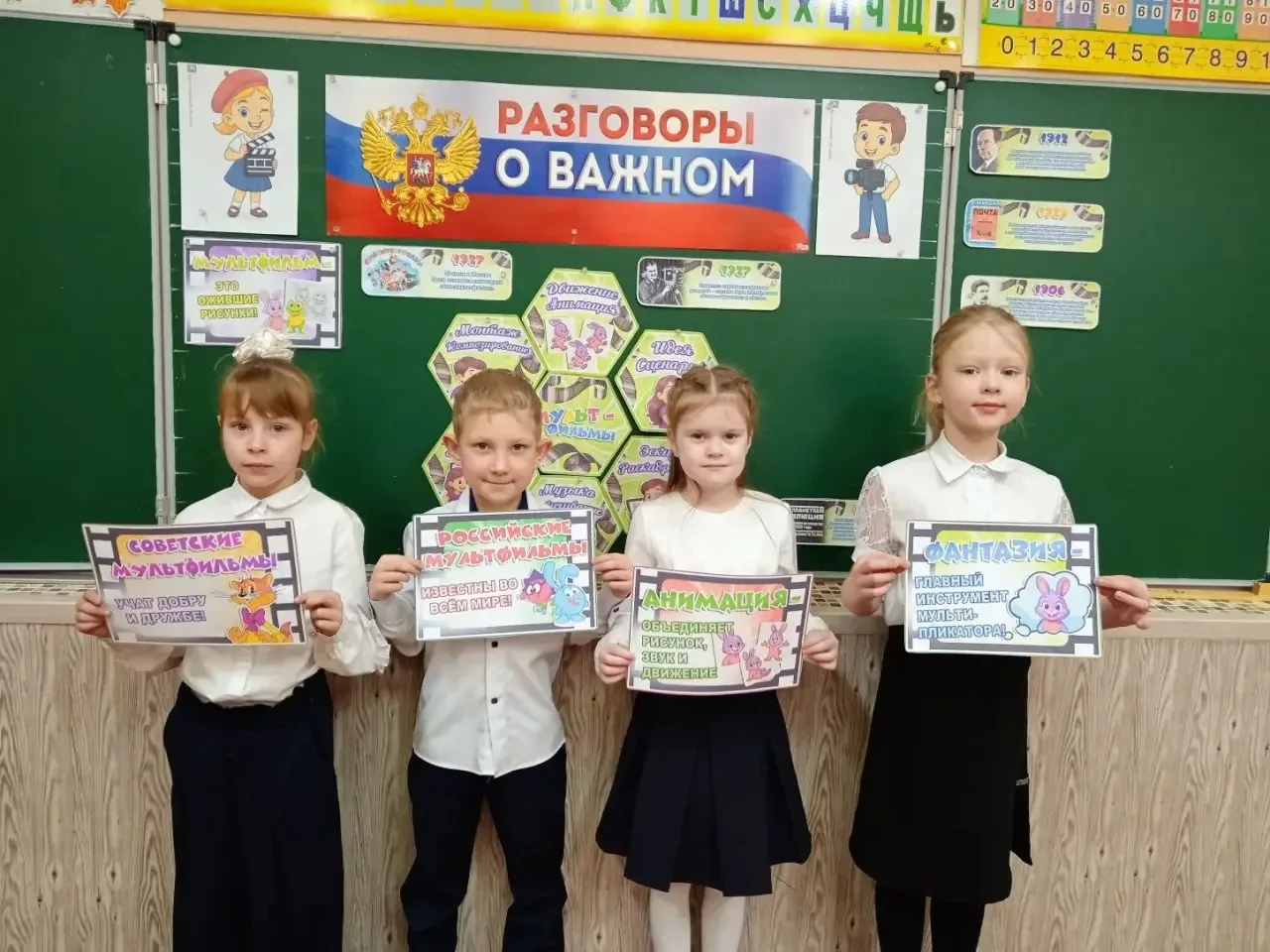 После линейки в нашей школе прошли занятия из цикла «Разговоры о важном». Тема занятия — «Как создают мультфильмы?» — открыла ребятам секреты анимационного искусства.