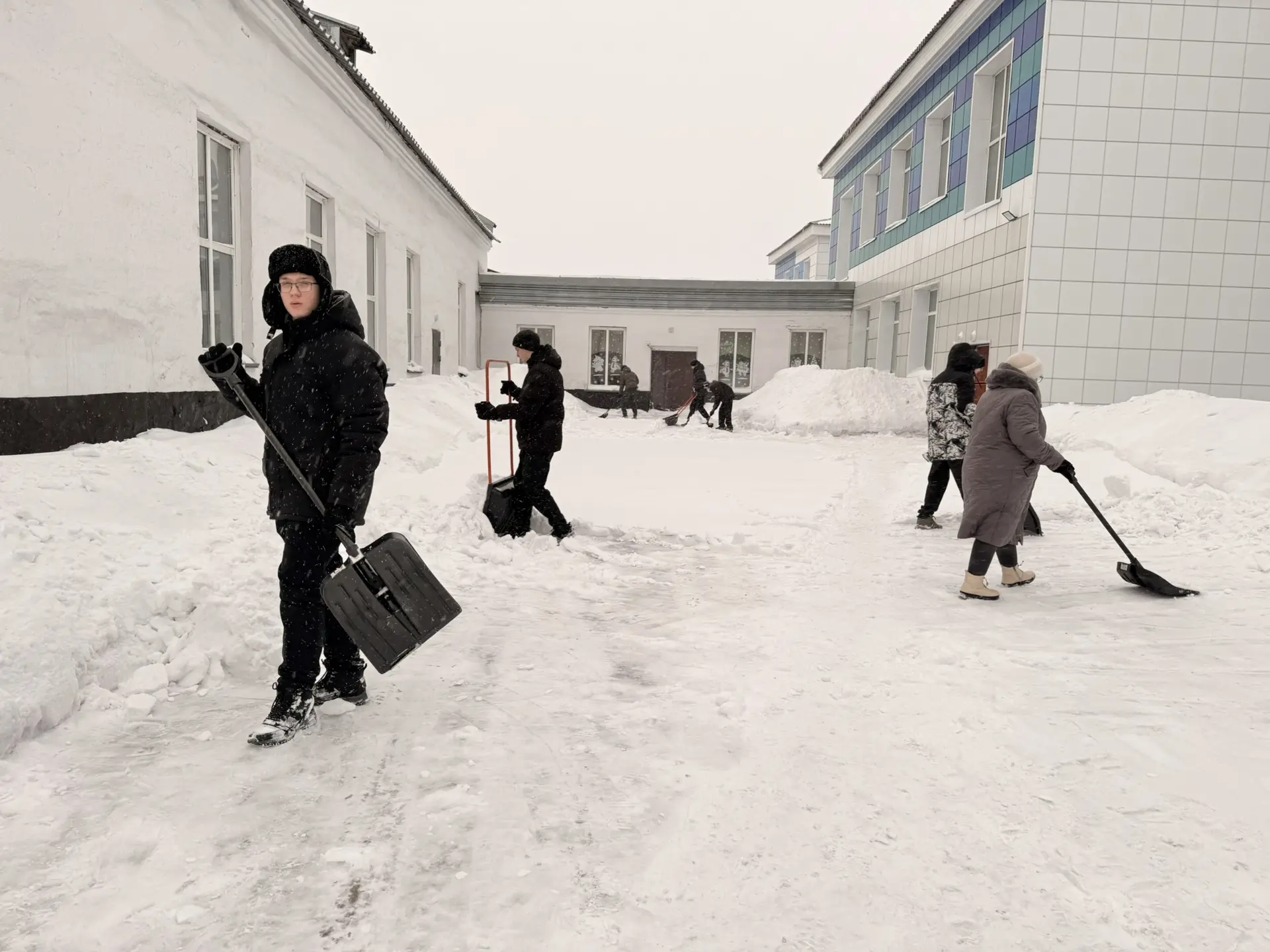 🤝Общими усилиями педагогов и активистов школы мы провели субботник на территории, очистили все подходы и дорожки от снега, чтобы школьники могли спокойно прийти утром 12 января и начать новую учебную четверть без каких-либо препятствий.