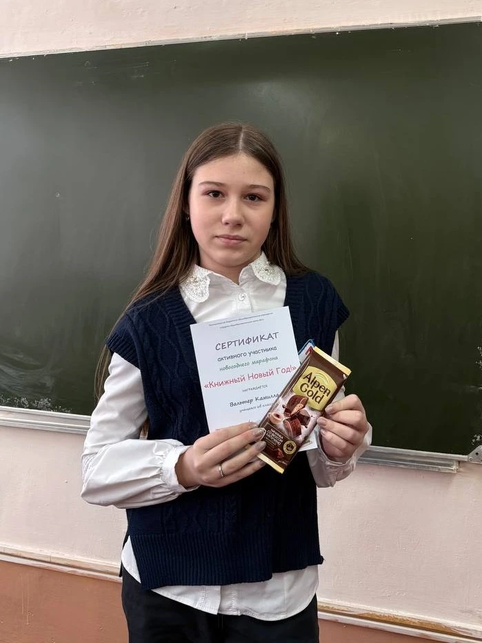 🏆 Сертификат активного участника получила Вальтер Камила, ученица 6в класса.