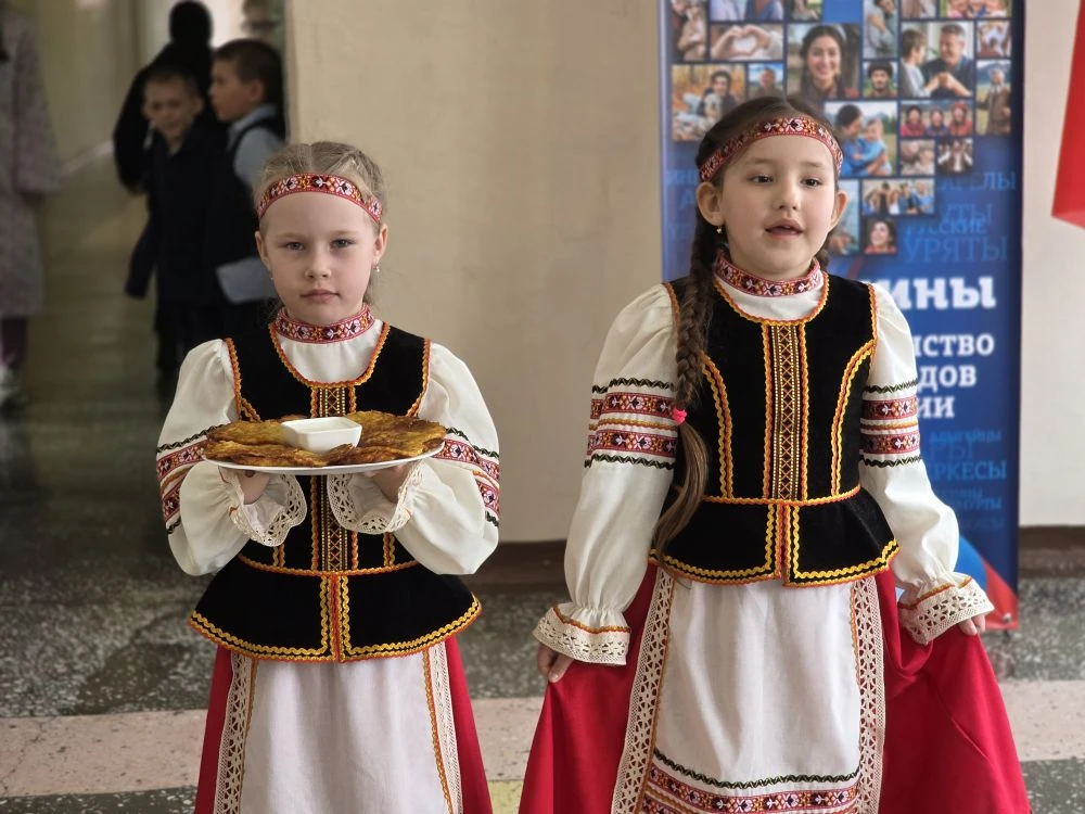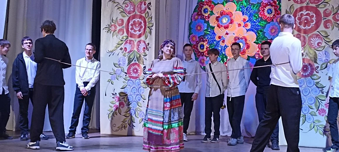 В рамках культурного проекта «Живые традиции: диалог поколений» творческий коллектив ДК подготовил для школьников театрализованную программу «Языки, традиции, обычаи – сокровища России».