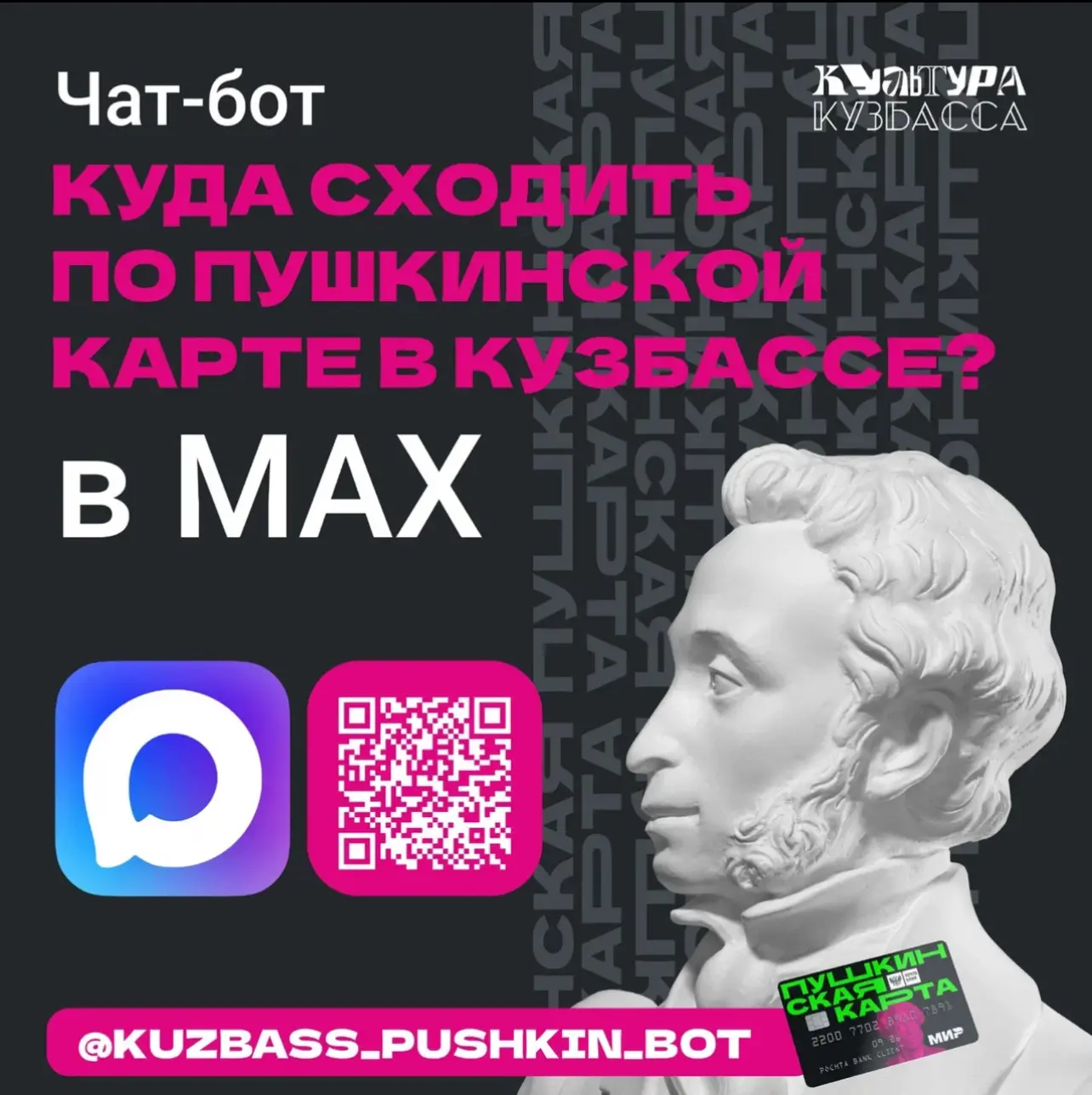В мессенджере MAX появился чат-бот «Куда сходить по Пушкинской карте в Кузбассе». Он интегрирован с платформой «Культура.РФ» и показывает подборку ближайших мероприятий — без перехода на сторонние сайты.