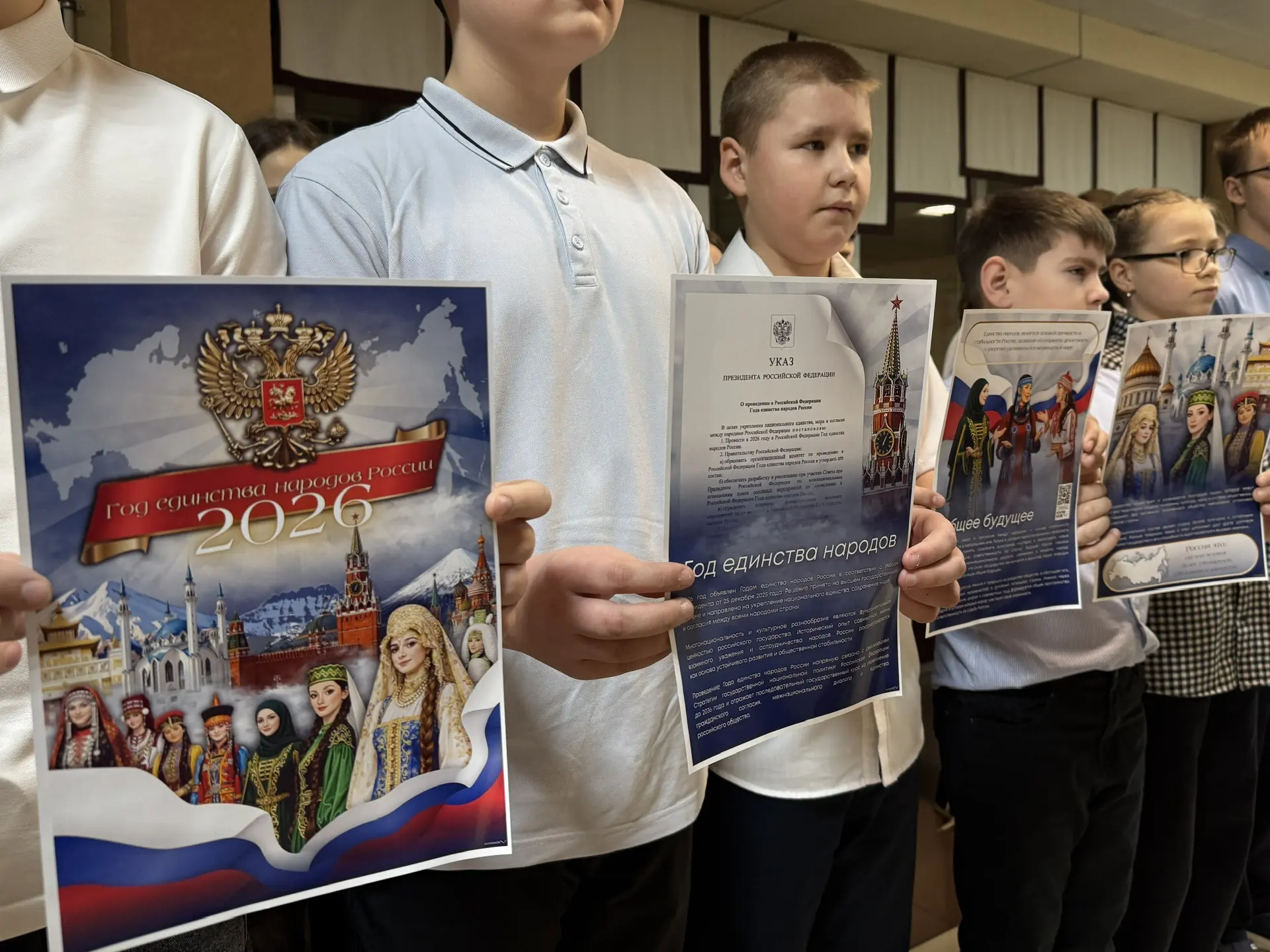 🤝 Сегодня на линейке мы говорили о том, что 2026 год объявлен Годом народного единства. Мы обсудили, как важно быть вместе и поддерживать друг друга.