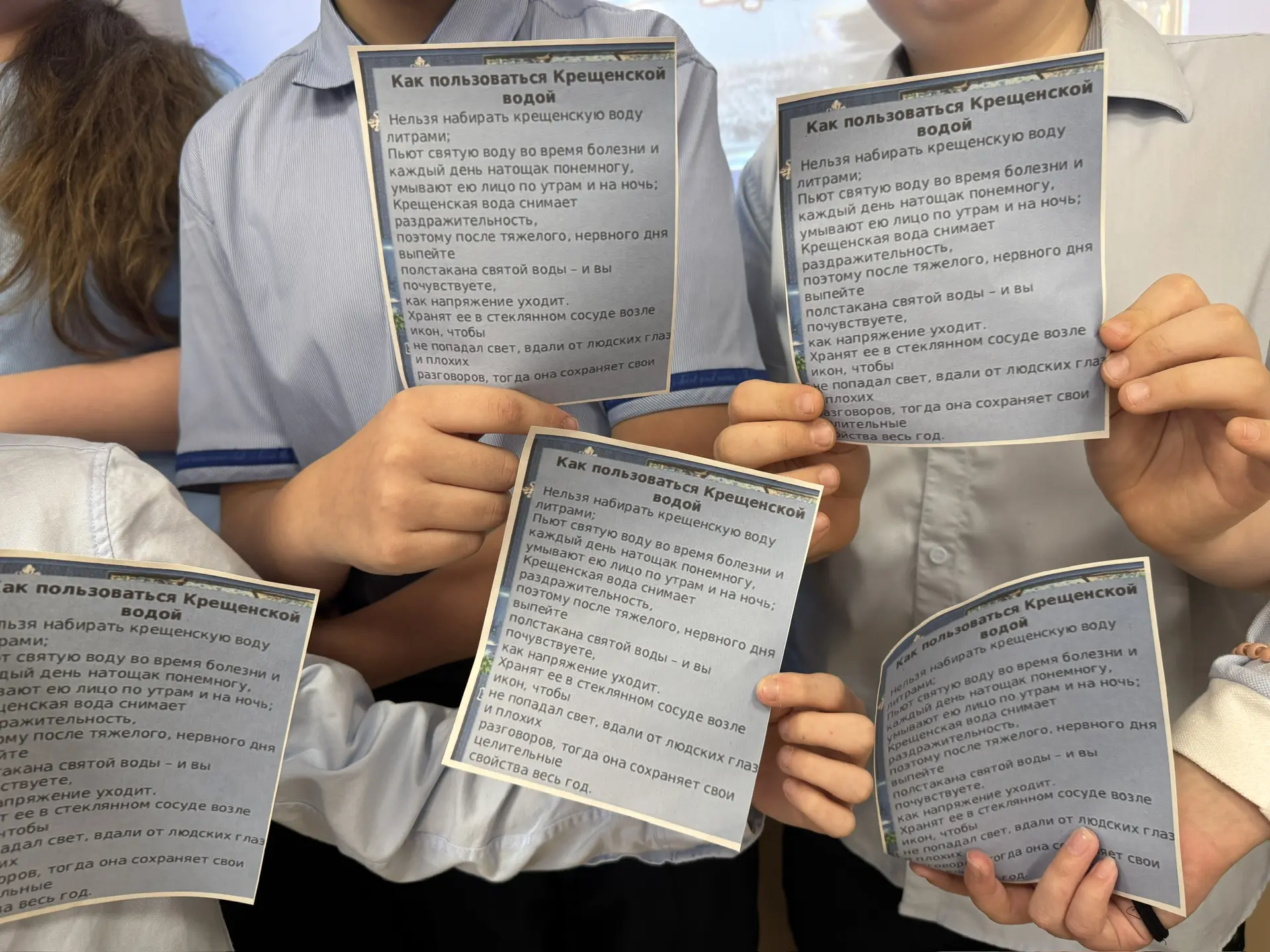 📄 В завершение занятия каждому ученику были розданы листовки с информацией о том, как правильно пользоваться Крещенской водой. Мы обсудили, какое значение она имеет и как важно относиться к этому ритуалу с уважением и пониманием.