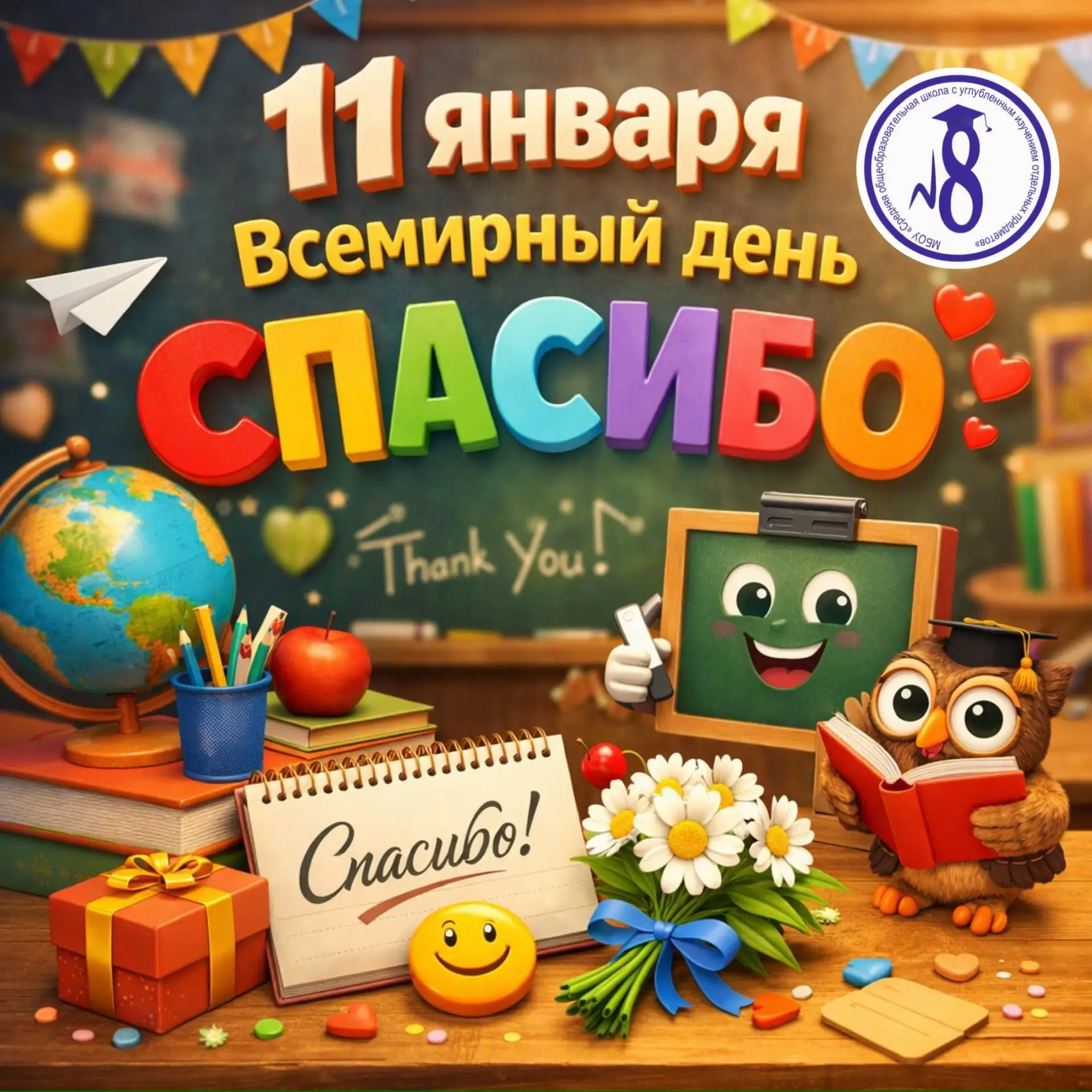 🎉 11 января отмечается Всемирный день спасибо! Этот день напоминает нам о важности благодарности и доброты в нашей жизни. Давайте не забывать говорить "спасибо" тем, кто нас окружает!