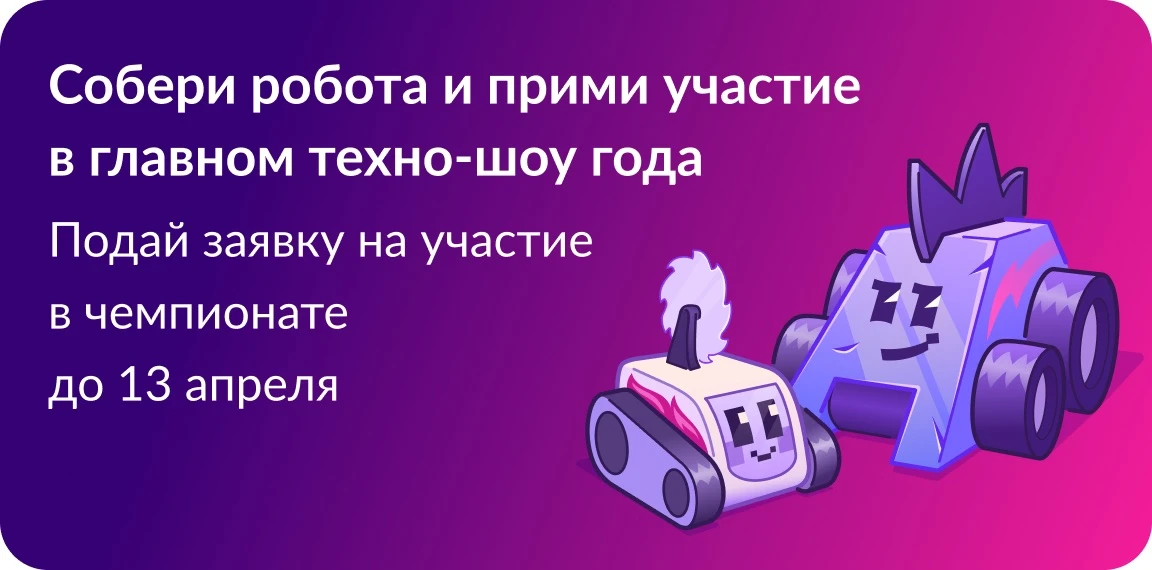 Примите участие в Международном чемпионате по битве роботов до 13 апреля ссылка на регистрацию в чемпионате