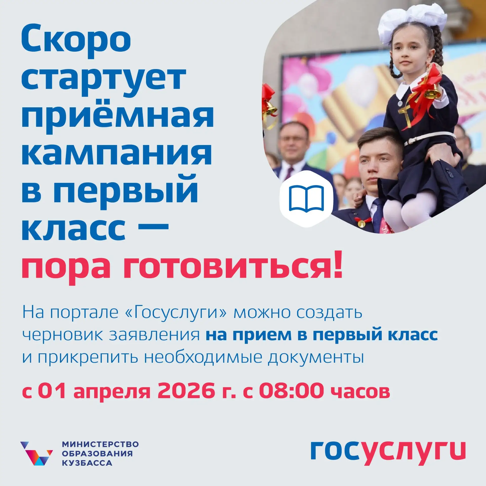 1 апреля 2026г. стартовал первый этап подачи заявлений на зачисление детей в первый класс общеобразовательных школ. На этом этапе подают заявление те дети, которые проживают на закрепленной территории (в том же районе, в котором находится школа), а также льготники, обладающие преимущественным/первоочередным правом на зачисление в школу.