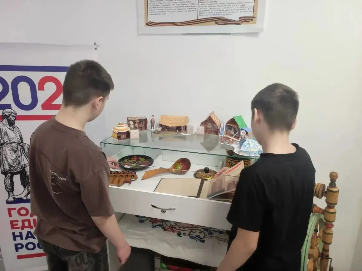 Пока многие наслаждаются заслуженным отдыхом, учащиеся 6 «А» класса Макар и Александр трудятся над созданием новой экспозиции, приуроченной к Году единства народов.