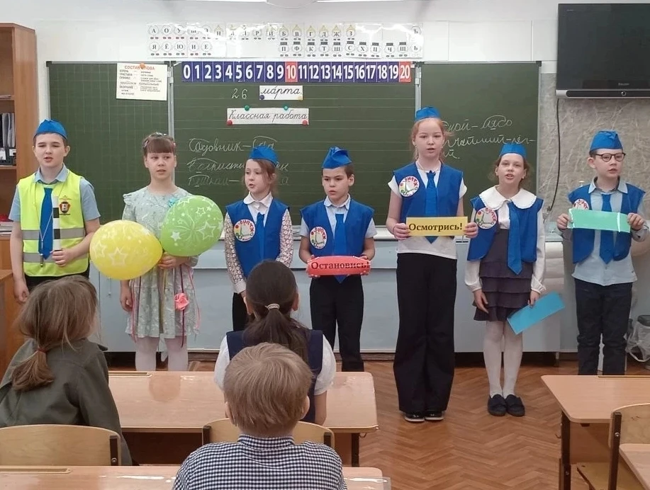 Весело и задорно наши ЮИДовцы из отряда «Вираж» провели агитационные занятия в начальной школе! 🚦😊