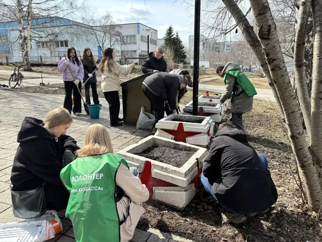 🧹В течение двух дней ребята заботливо наводили порядок на территории: очищали мемориал, убирали прошлогоднюю листву, покрасили вазоны, которые совсем скоро будут украшены цветочными саженцами - они ждут установления тёплой и благоприятной погоды .