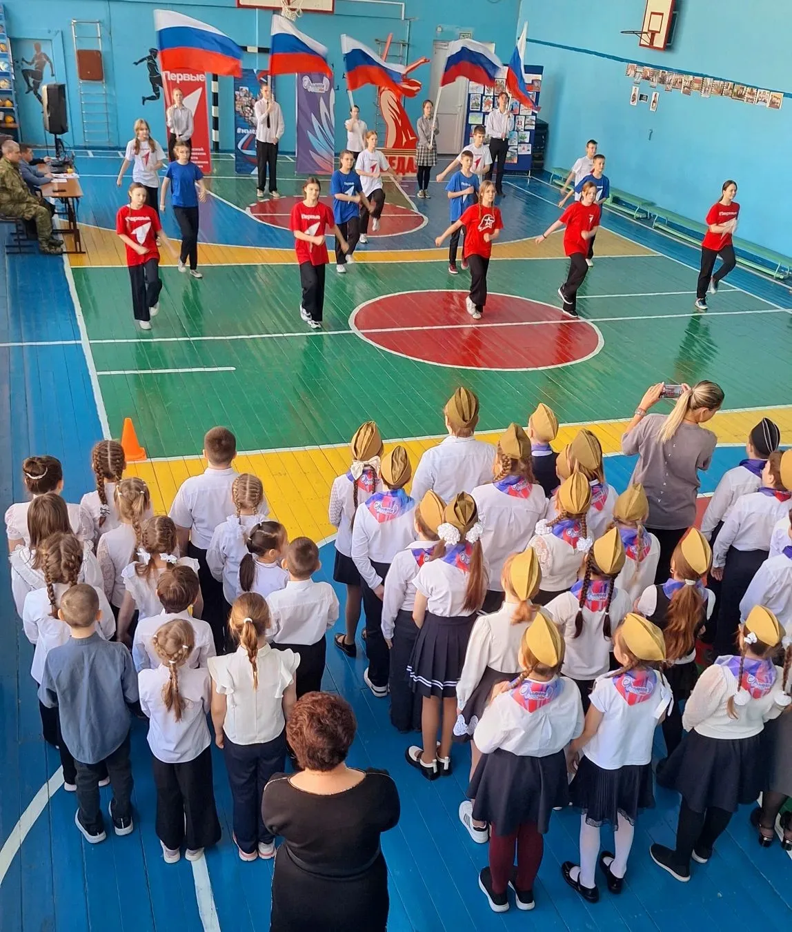 Каждый понедельник в нашей школе начинается с важного и торжественного события — церемонии выноса Государственного флага и исполнения гимна Российской Федерации. 🎶 После линейки мы традиционно отправляемся на занятие «Разговоры о важном».