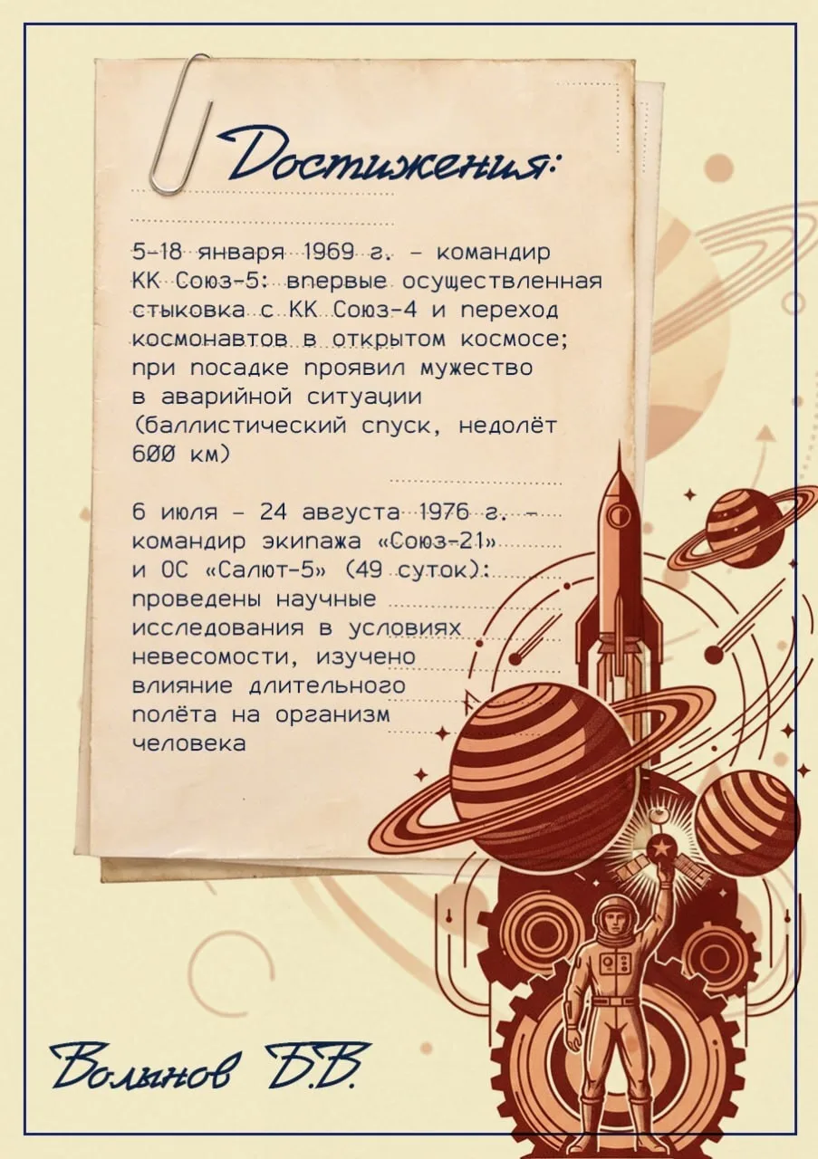 🔹 Борис Волынов — дважды побывал на орбите, проявил героизм при аварийной посадке и работал на станции «Салют-5».