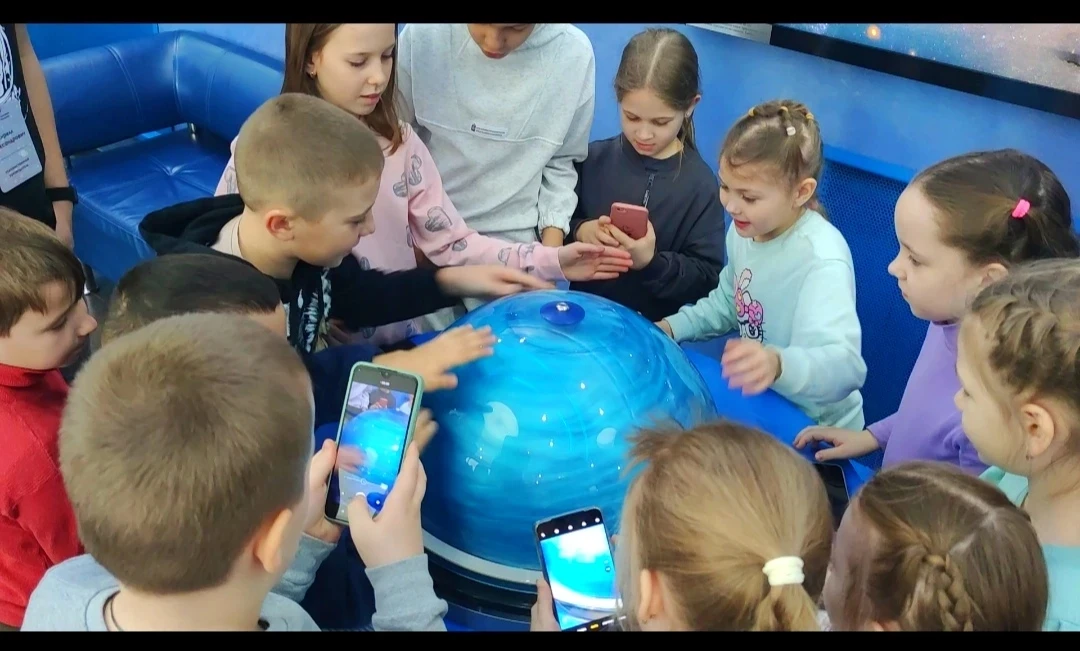 Весело и с пользой проводят каникулы наши первоклассники! Ученики 1Б и 1В в компании с 5В классом посетили познавательную экскурсию «Секреты мироздания». 🌍 Ребята побывали в планетарии, где с помощью экспонатов узнали как в природе происходят разные явления🌪️⚡️🌊. Посмотрели фильм о планетах 🌎 🪐 и рассмотрели звездное небо 🌌☄️. Дальше путешествие продолжилось в сквере геологов и геологическом музее нашего города. Наши учащиеся узнали о разных полезных ископаемых 🪨 💎нашей области, смогли потрогать их руками и узнали их свойства. С новыми знаниями и впечатлениями вернулись домой.