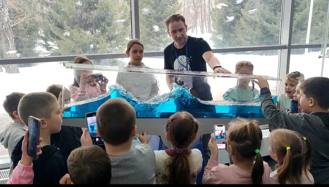 Но это была не просто скучная лекция о работе на заводе. Для школьников организовали настоящий научный праздник! 👨🏫 В гости к нам приехал Дмитрий Побединский — известный популяризатор науки, физик, выпускник МФТИ и автор крутого YouTube-канала «Физика от Побединского».