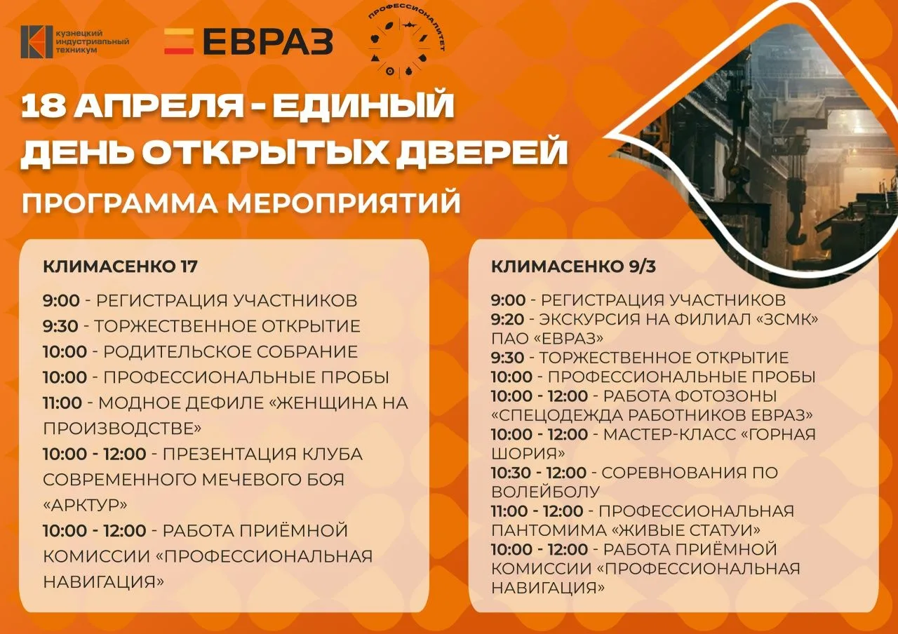 🎉18 апреля в 11:00 в Профессиональном колледже г.Новокузнецка будет проводиться "Единый день открытых дверей" Федерального проекта "Профессионалитет".