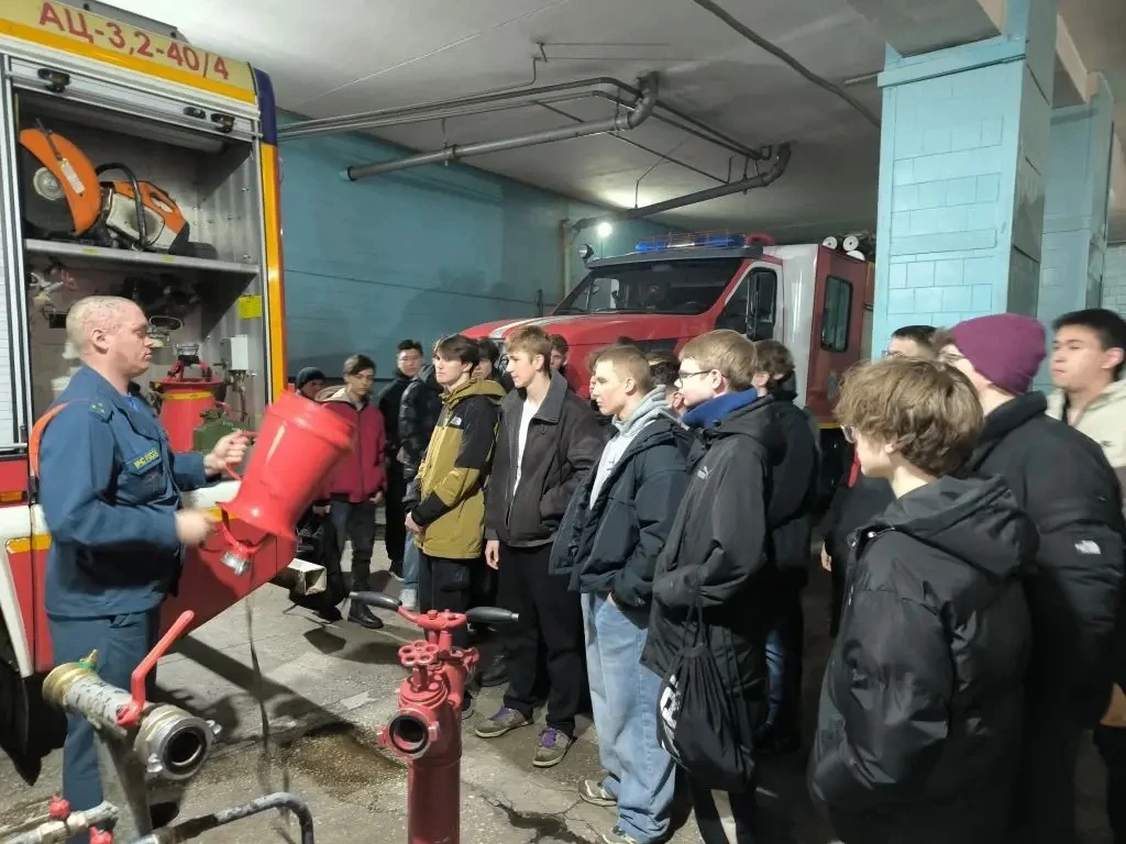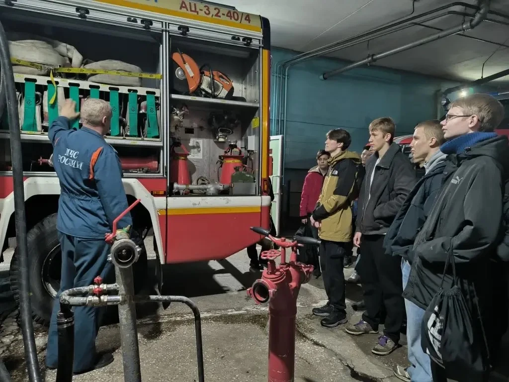 В первый день сборов ребята посетили профориентационное занятие в пожарно-спасательной части №5. Начальник караула старший лейтенант Ермолин Д. Ю. и сержант Зенков Е. Д. познакомили юношей с профессией огнеборца. Школьникам продемонстрировали пожарные автомобили, снаряжение, «боевку» и дыхательные аппараты — некоторые даже примерили обмундирование на себе. Самым волнующим вопросом от ребят стал путь становления пожарным. Они узнали, что за героической профессией стоят годы обучения, постоянные тренировки и огромная ответственность.