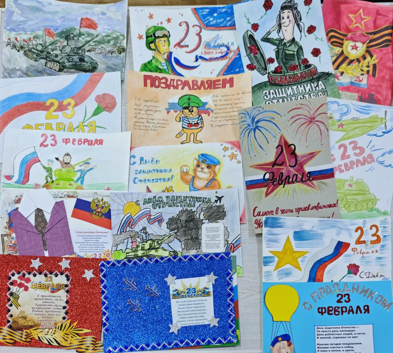 Учащиеся школы накануне праздника сделали открытки своими руками тем, кто сегодня на передовой защищает нашу Родину и тем, кто находится в госпиталях.
