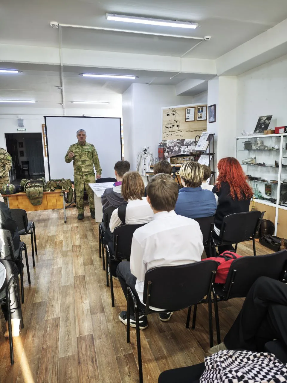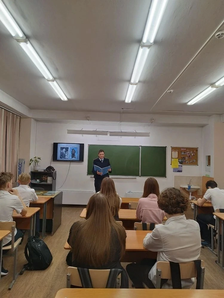 Сегодня в школе прошел необычный урок мужества для учеников 8-го класса. Сотрудники Министерства внутренних дел рассказали ребятам о героизме и самоотверженности наших соотечественников