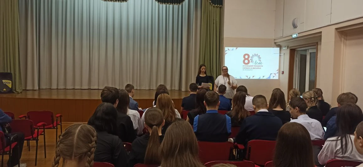 Сегодня представители Кузнецкого техникума сервиса и дизайна им. В.А. Волкова провели увлекательную встречу с учениками 9-го класса.