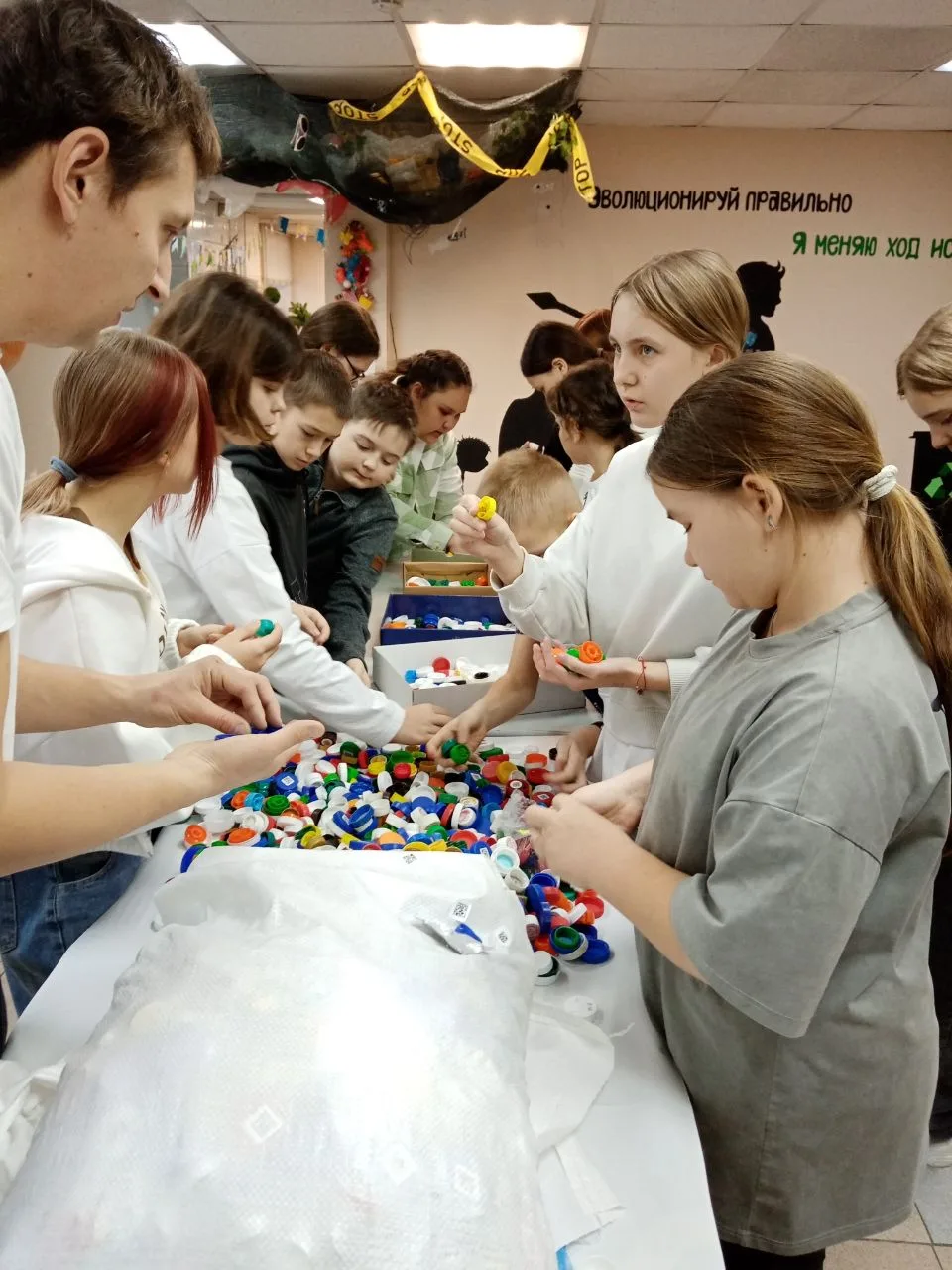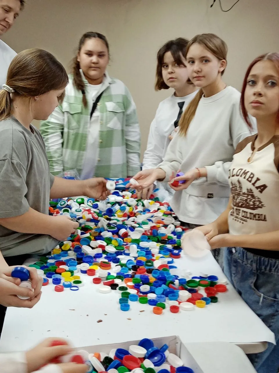 Ребята смогли поучаствовать в сортировке пластиковых крышек — это оказалось довольно сложным, но невероятно интересным процессом! 🌿