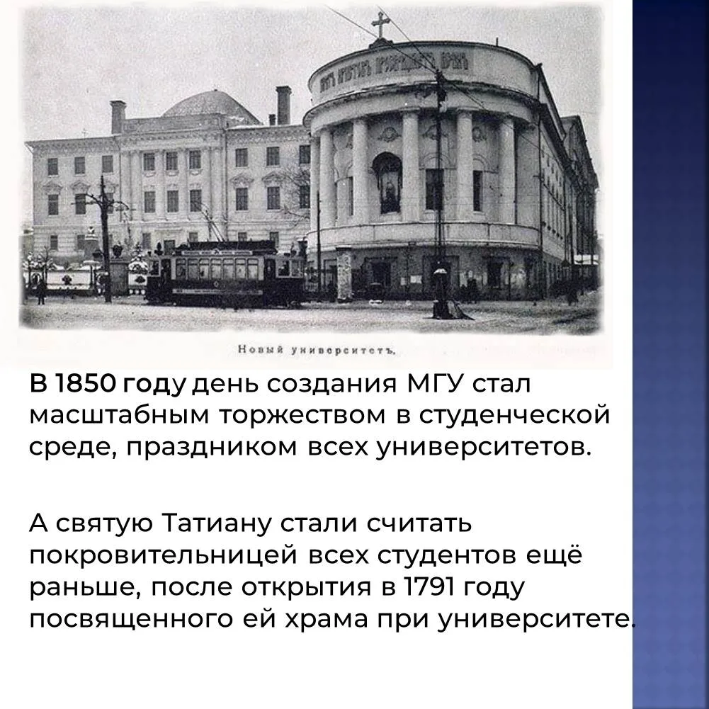 История праздника насчитывает более двух веков и тесно связана с Московским университетом. 25 января 1755 года, в день памяти святой мученицы Татианы, императрица Елизавета Петровна издала указ об учреждении в Москве первого российского университета.