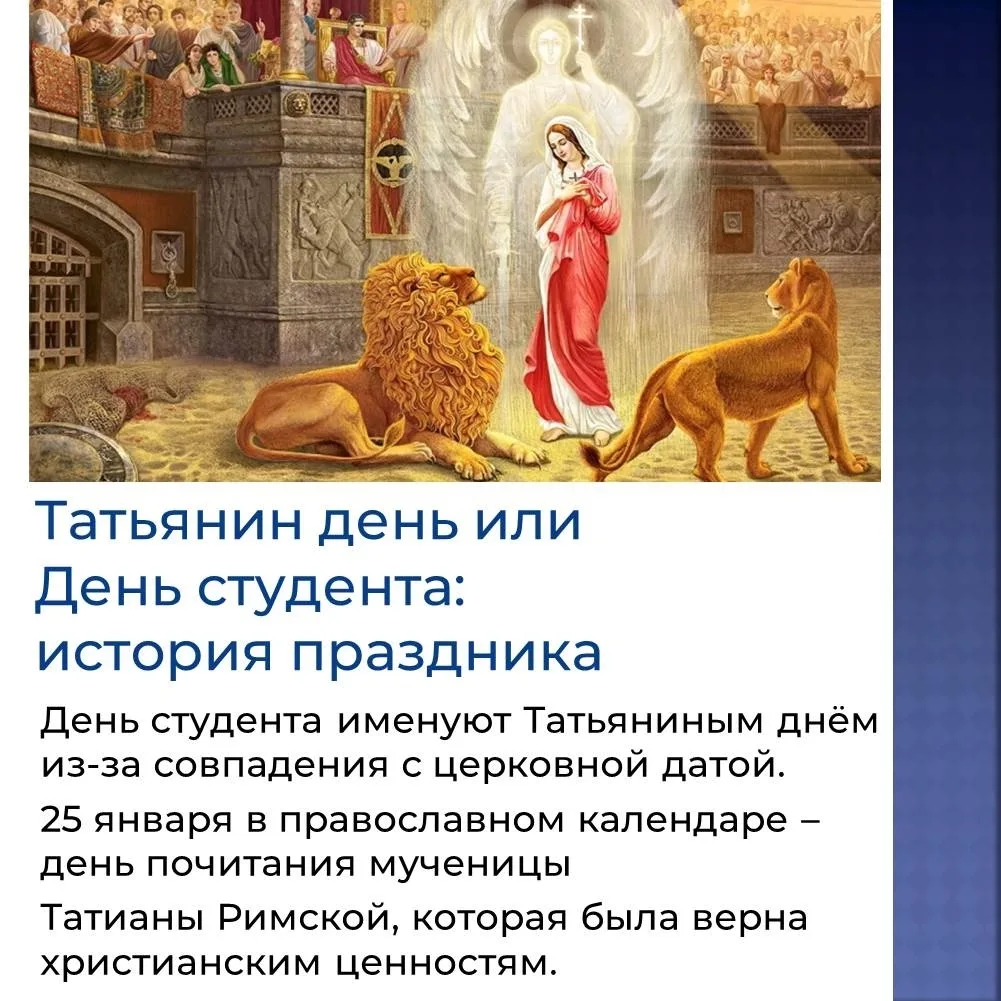 🎉 Поздравляем всех студентов и Татьян с праздником, желаем вам мира, добра, успехов в учебе и удачи на жизненном пути!