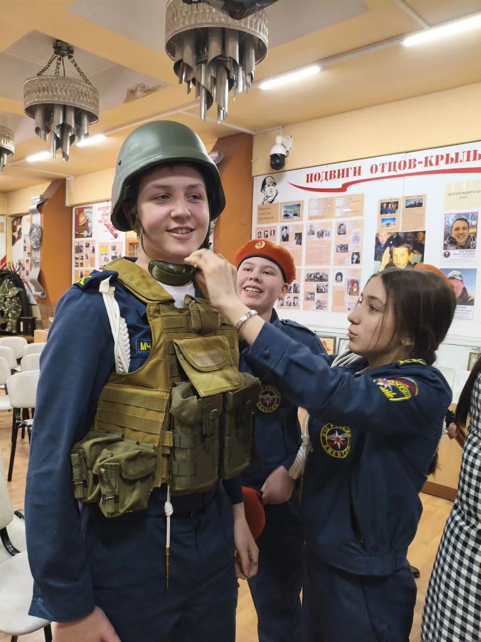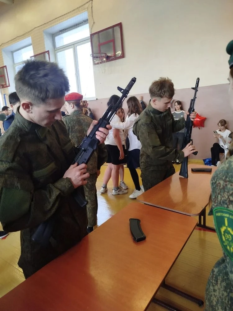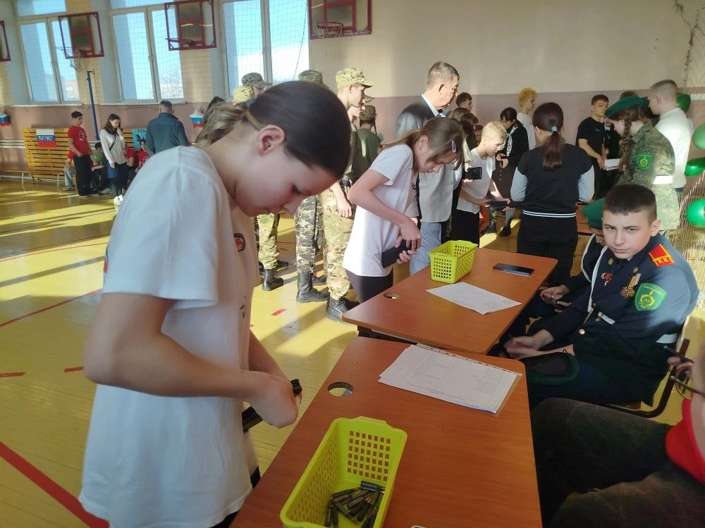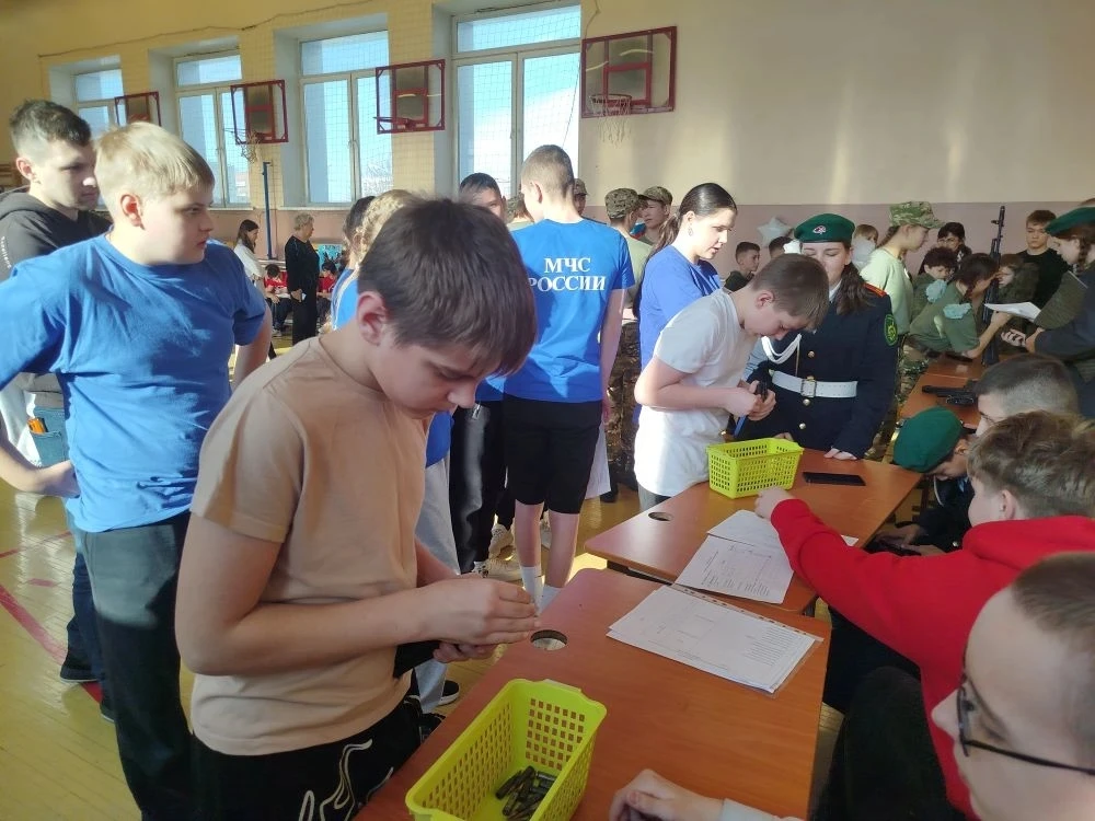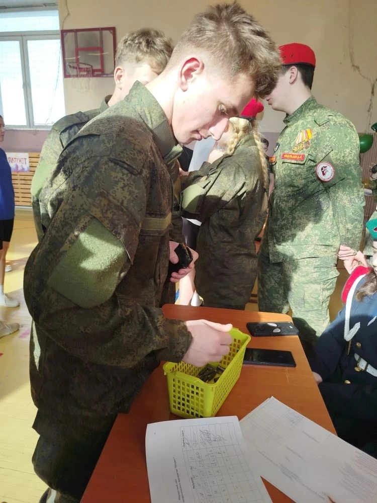Ребята собирали и разбирали автомат, снаряжали магазин патронами, подтягивались, отжимались, оказывали медицинскую помощь при переломах , а также был смотр строевой подготовки.