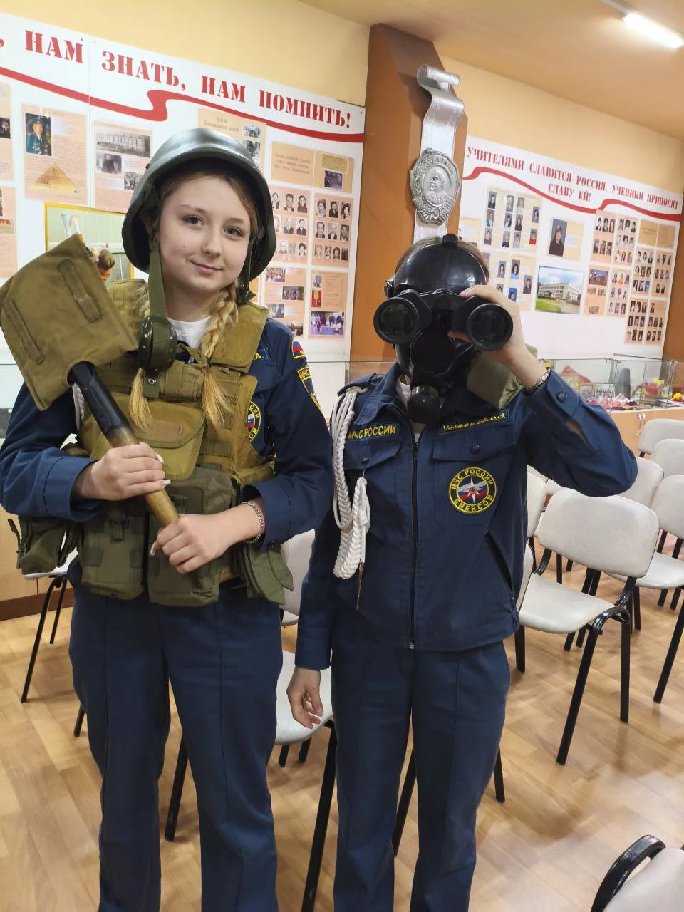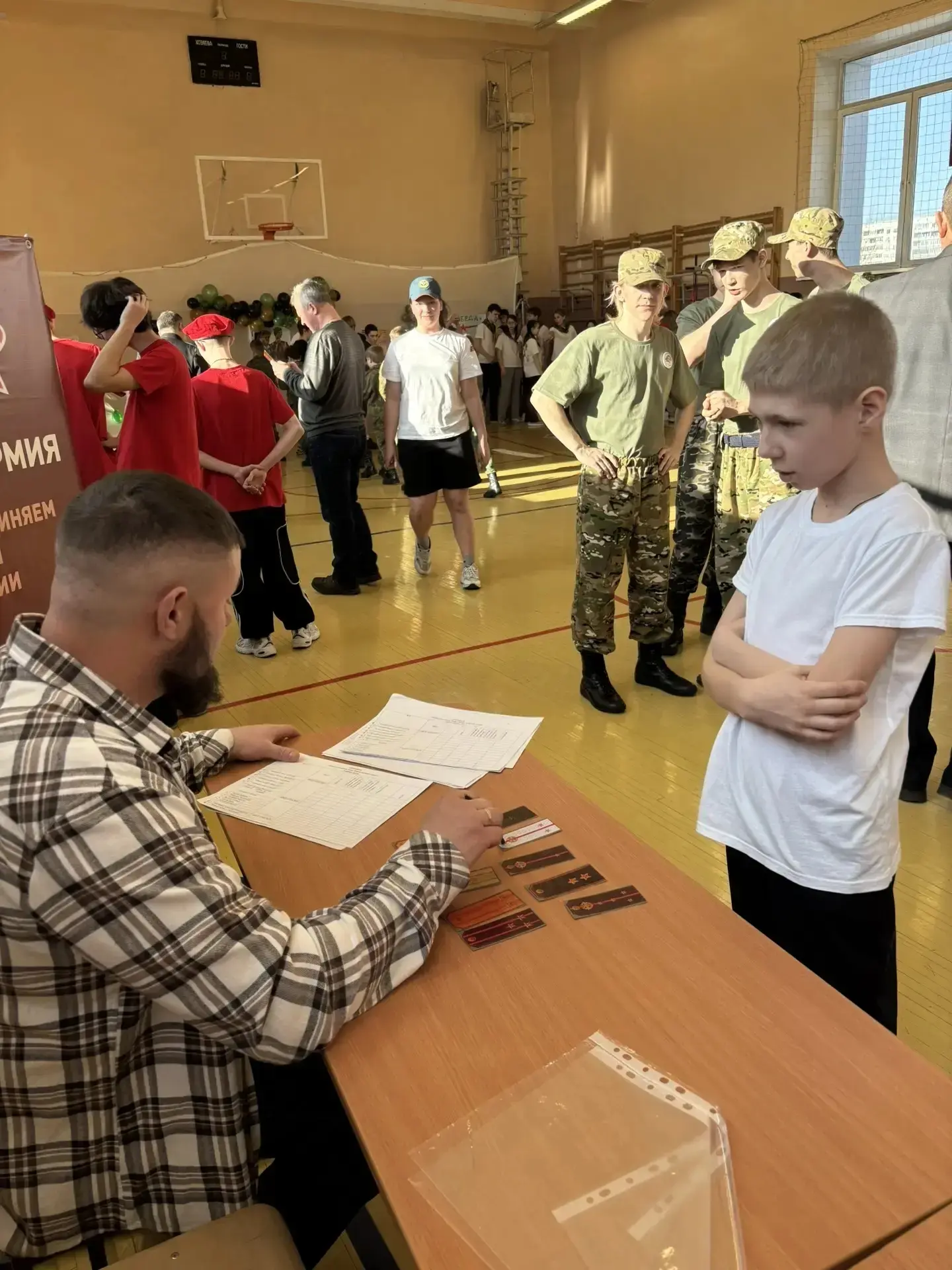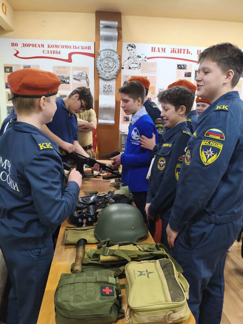 Ребята собирали и разбирали автомат, снаряжали магазин патронами, подтягивались, отжимались, оказывали медицинскую помощь при переломах , а также был смотр строевой подготовки.
