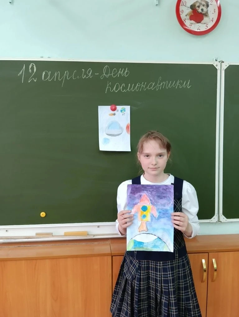 В 4 В классе прошел конкурс рисунков, посвященный 65- летию первого полета человека в космос, который стал заключительным этапом классного часа, посвященного Дню космонавтики.