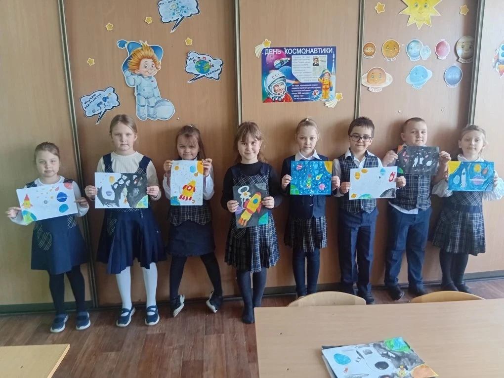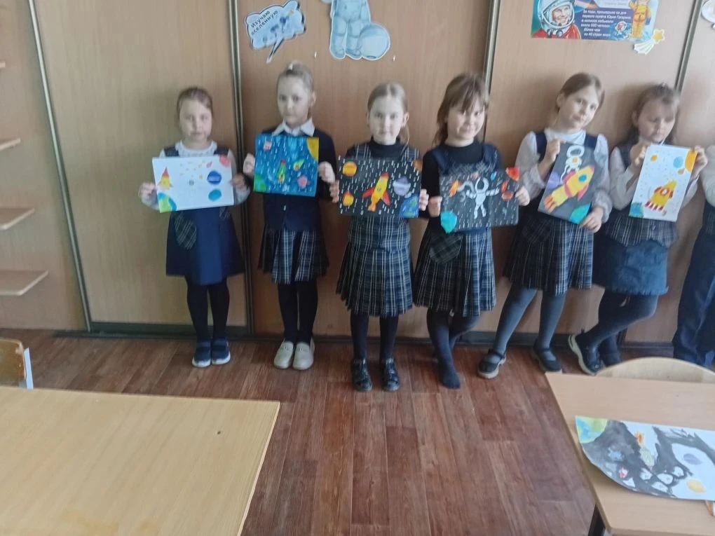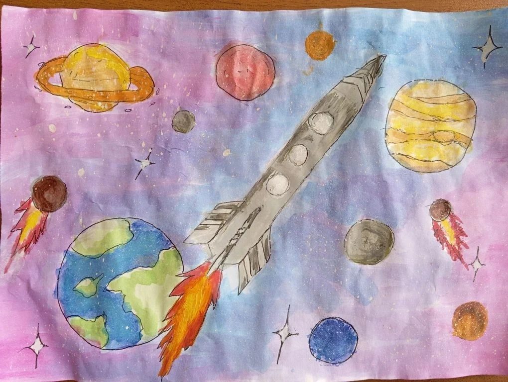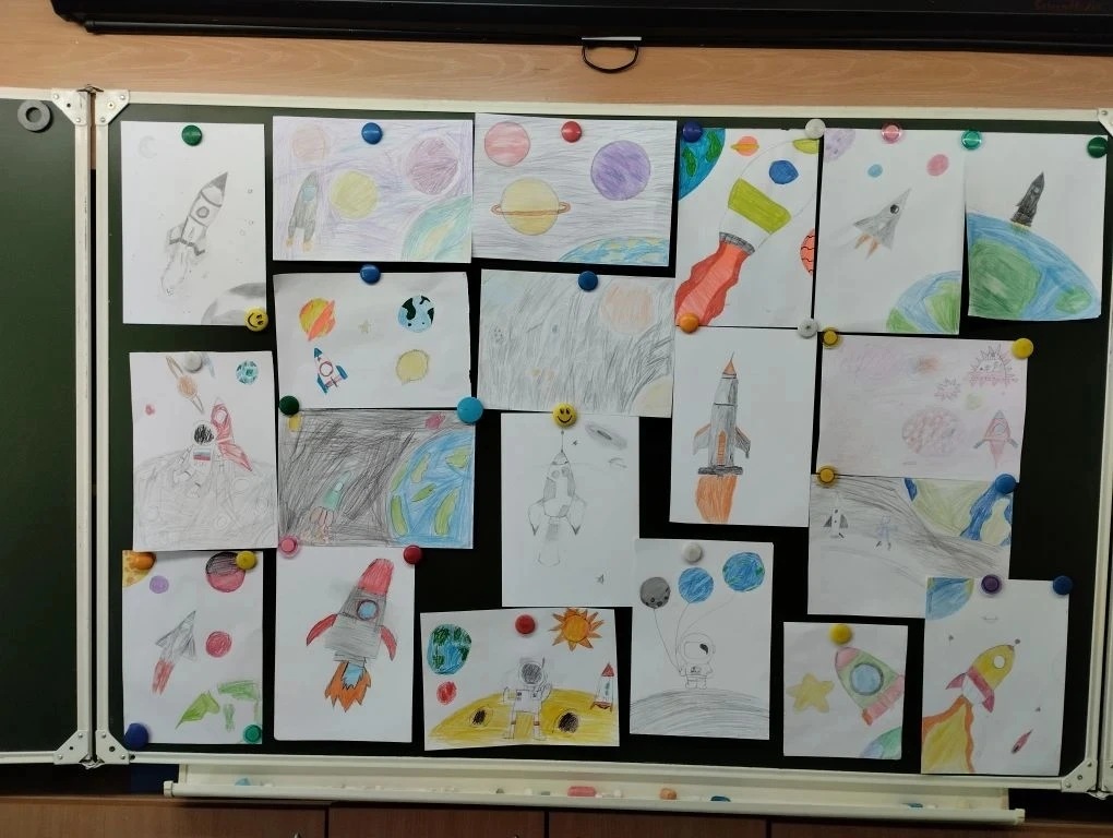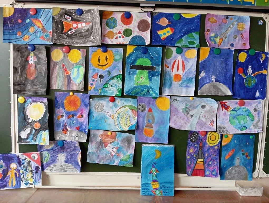 Ученики 3 В класса провели конкурс рисунков о космосе.