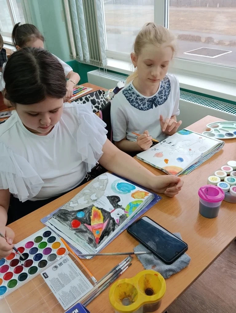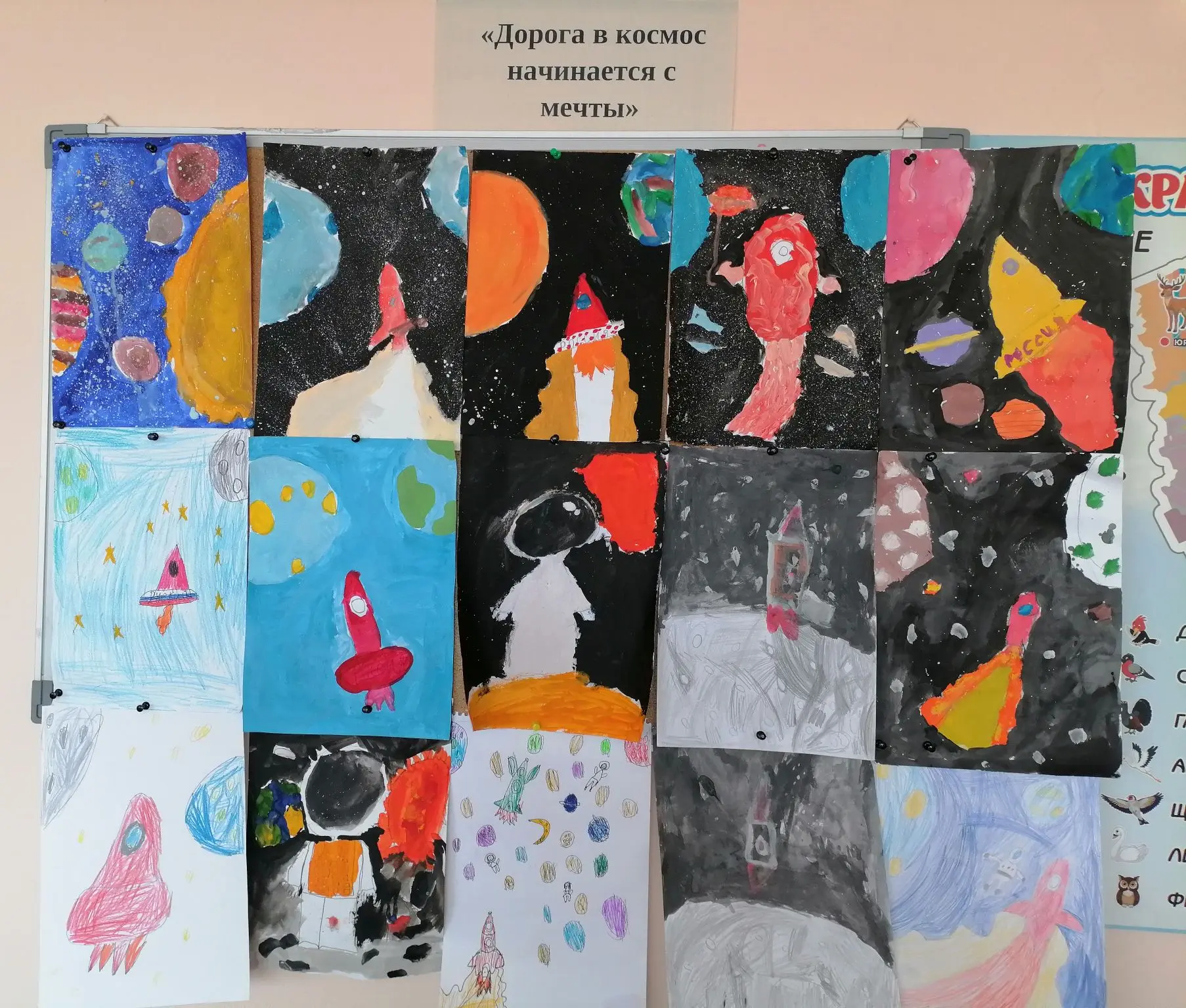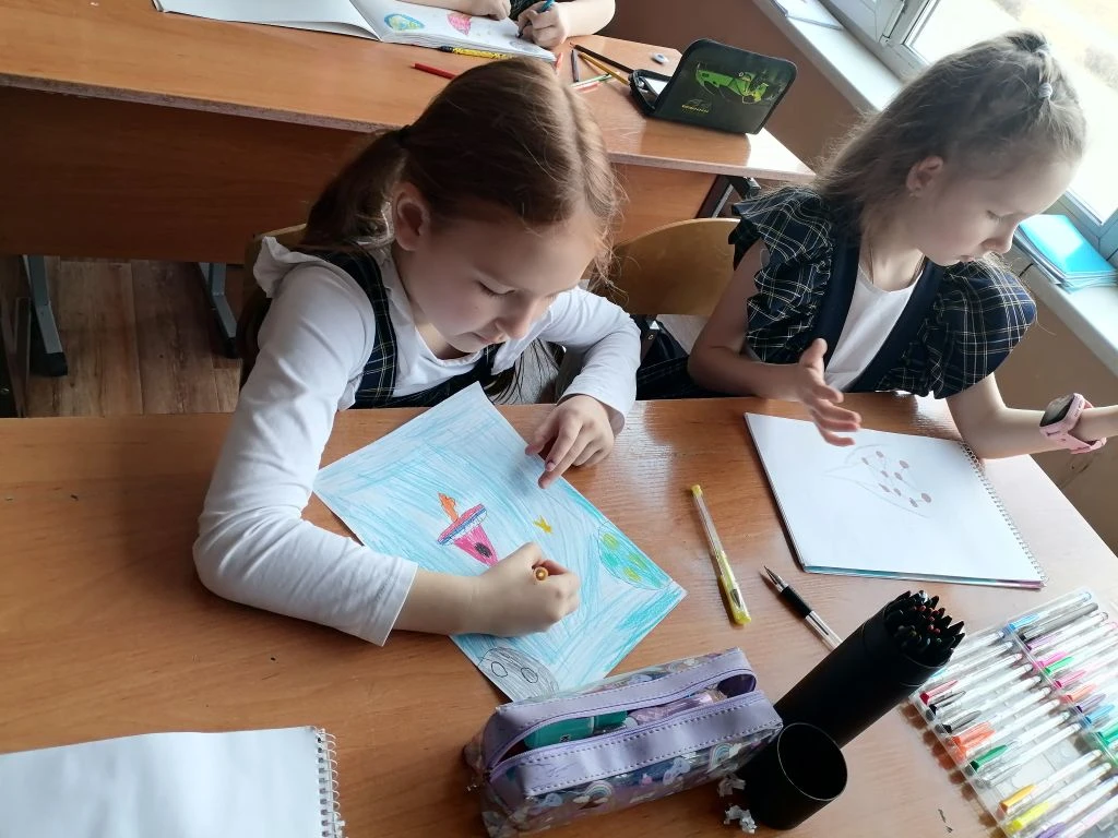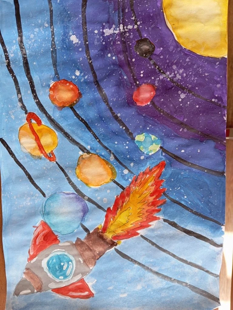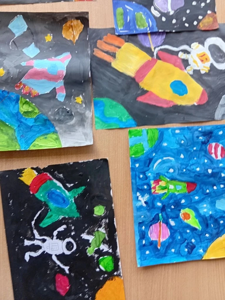 Ученики 3 В класса провели конкурс рисунков о космосе.