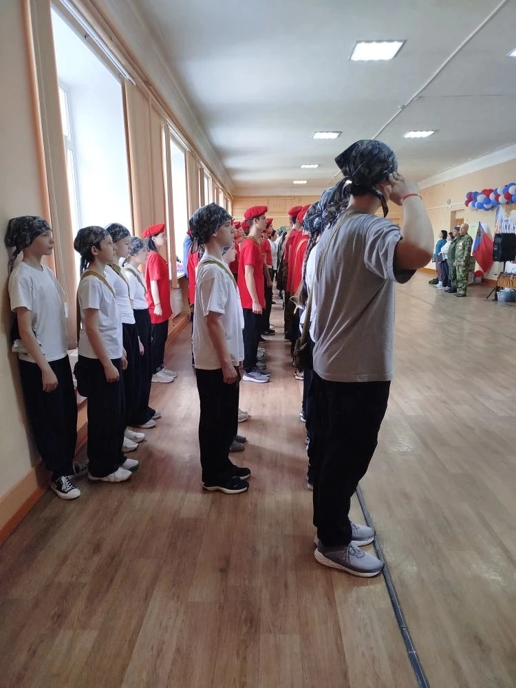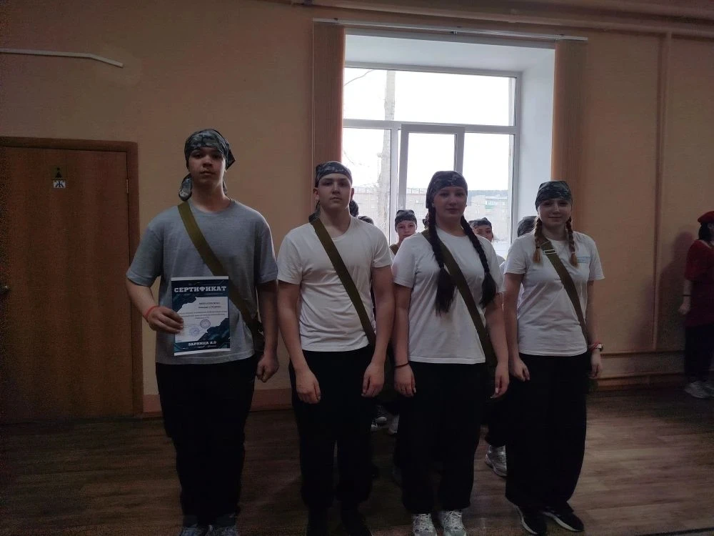От нашей школы принимала участие команда старшей возрастной группы, юнармейский отряд "Спецназ".