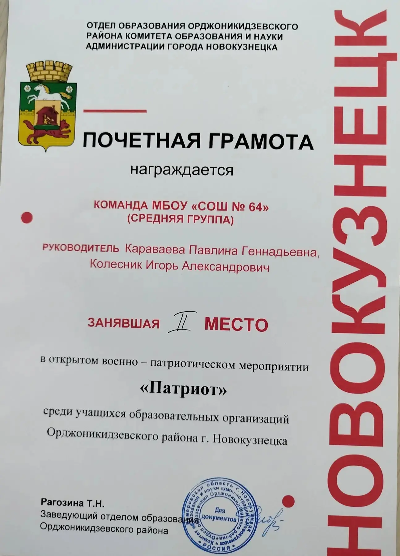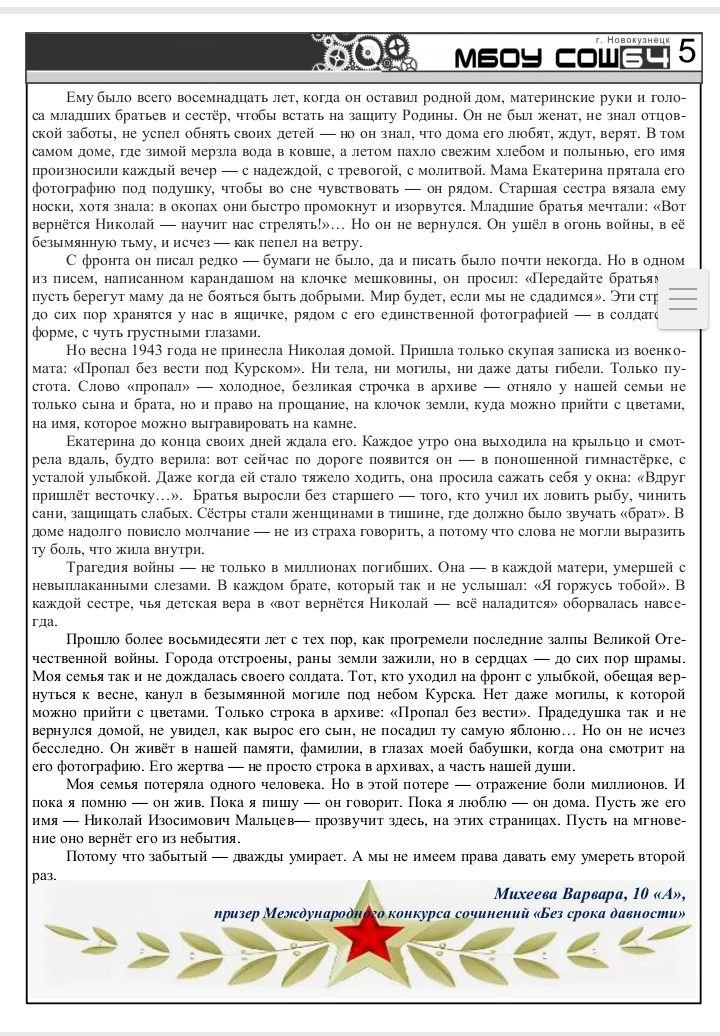 Мы гордимся тем, что труд Полины был оценен по достоинству: она заняла почетное 2 место!