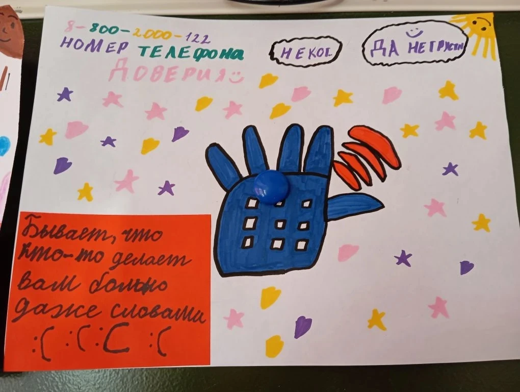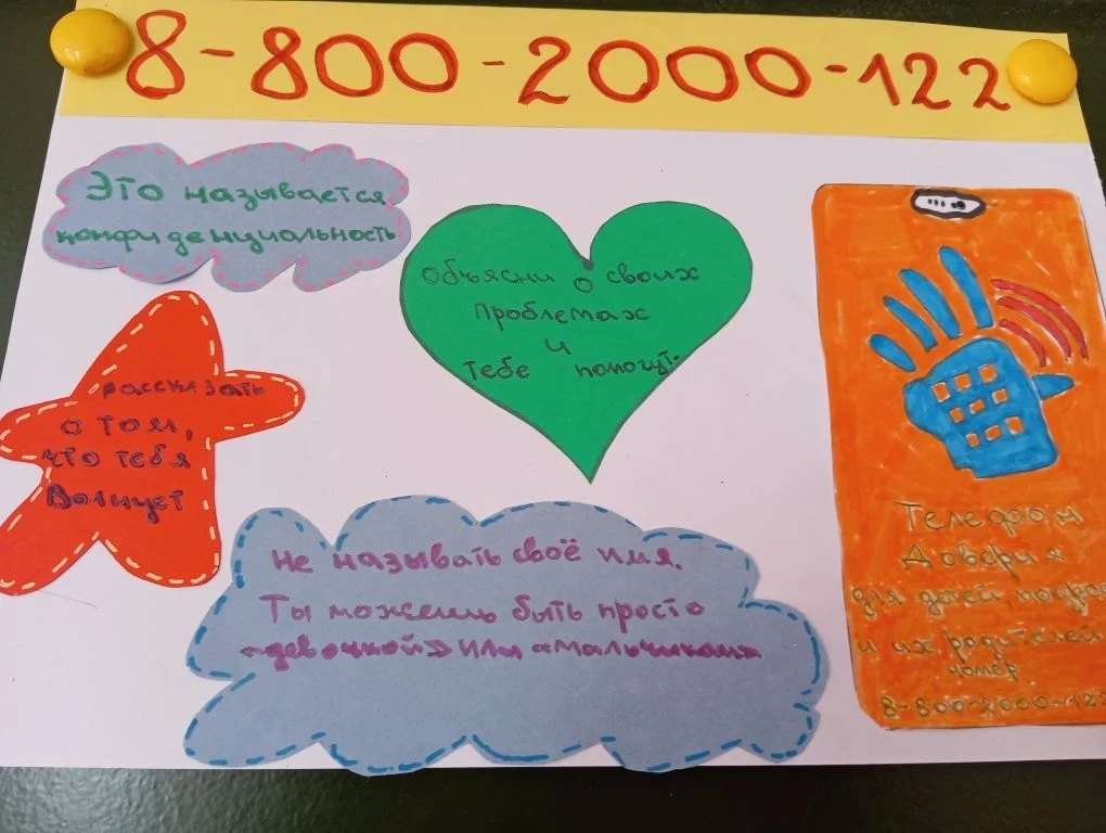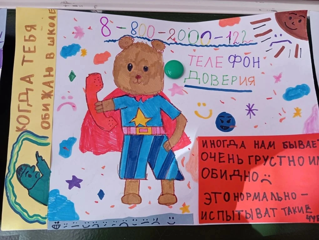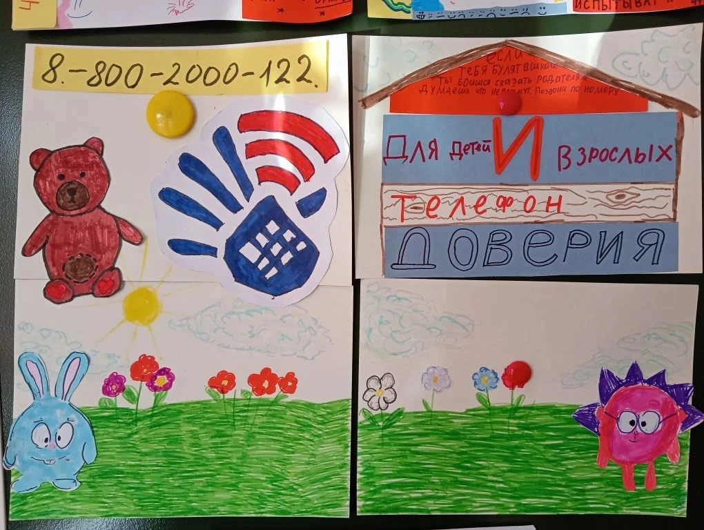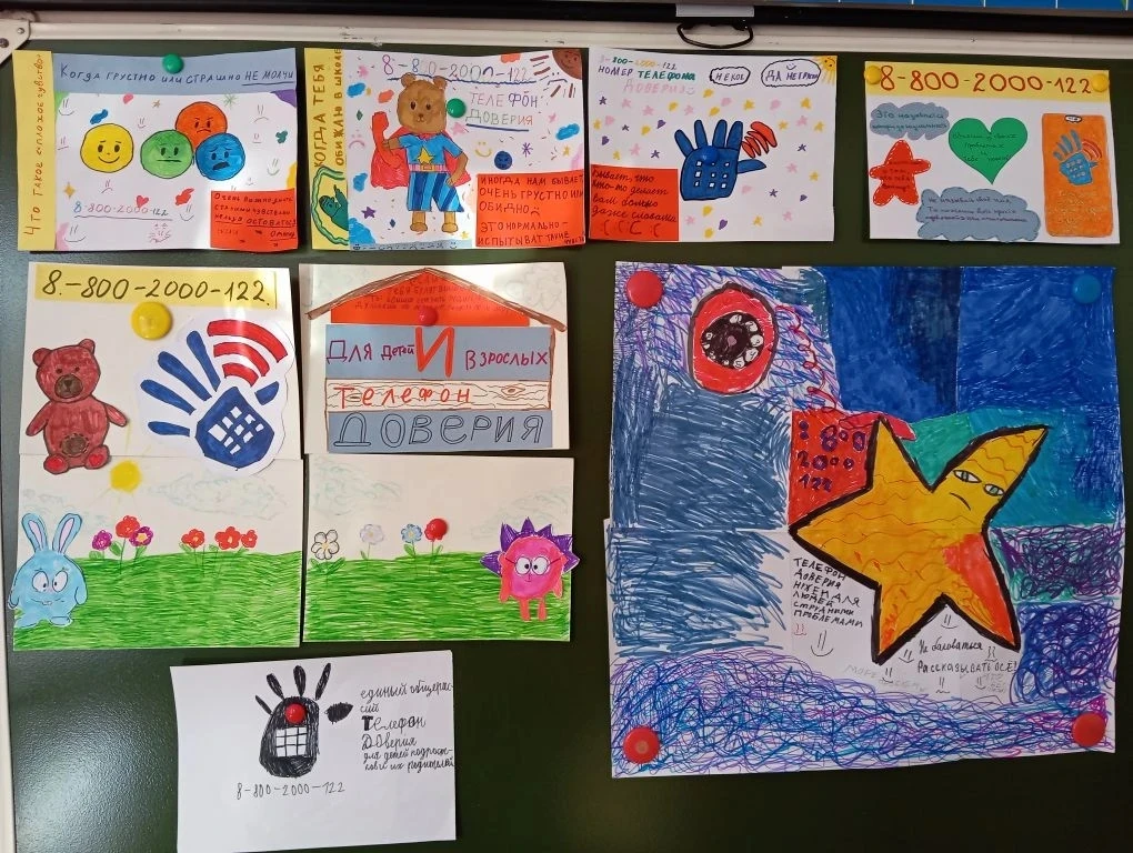В рамках проведения акции "Детский телефон доверия" учащиеся 2Б класса своими руками сделали красочные листовки с номером телефона доверия, которые они разместили на школьном информационной стенде.
