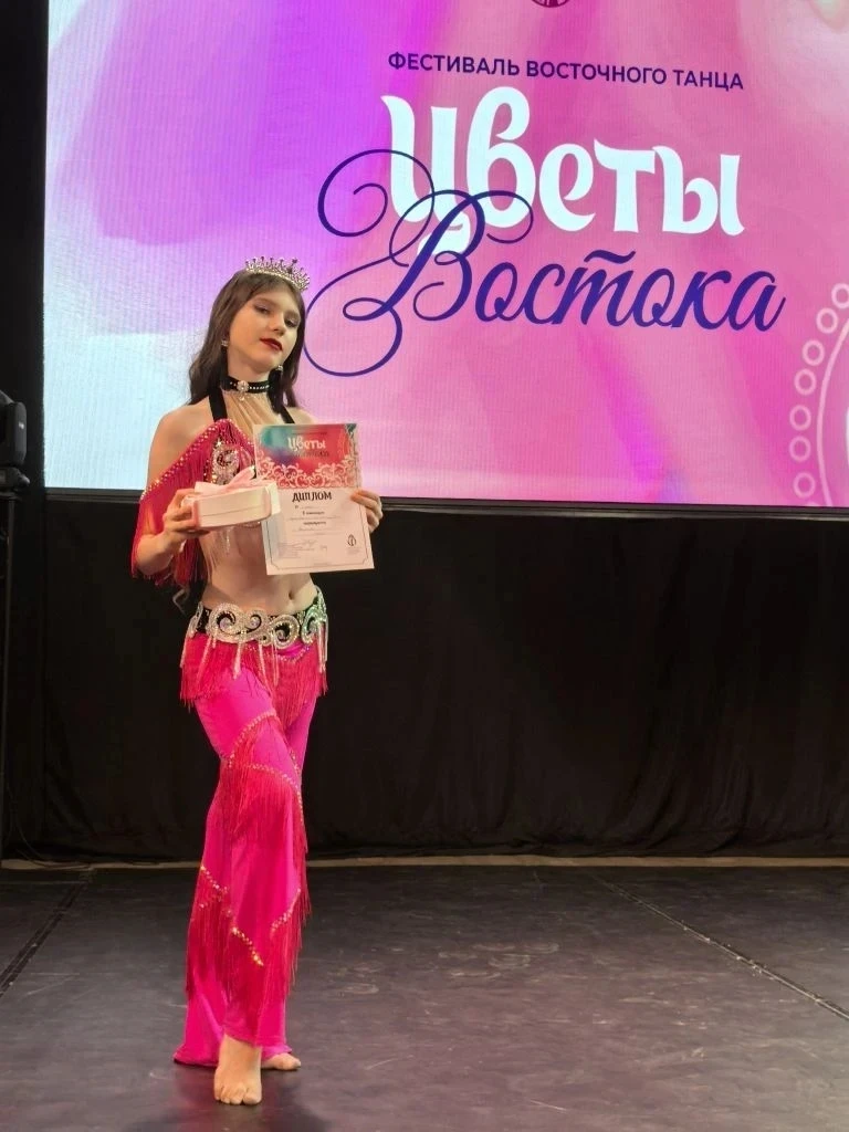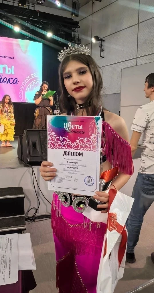 г. Абакан Фестиваль восточного танца " ЦВЕТЫ ВОСТОКА" Феоктистова Милана 5А заняла 1 место в Номинации Корона👑фестиваля среди детей до 12 лет